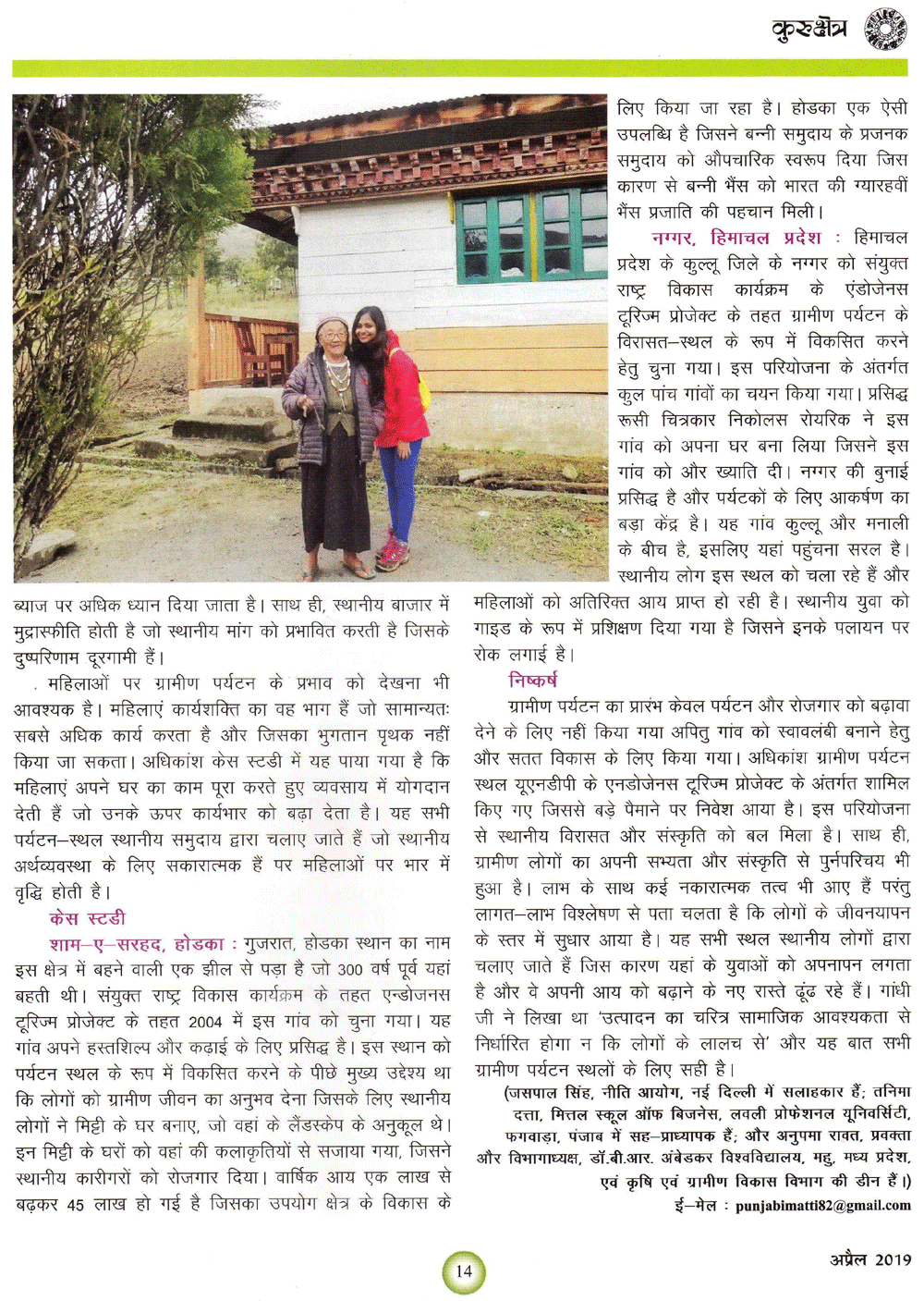 कुरुक्षेत्र : ग्रामीण पर्यटन : स्थानीय कला ,संस्कृति एवं रोजगार को बढ़ाने में सहायक (20-04-2019)