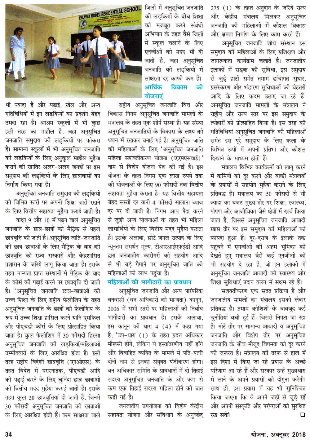 योजना : अनुसूचित जनजाति की महिलाओं का सशक्तीकरण (27-10-2018)