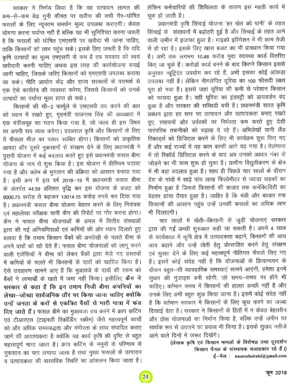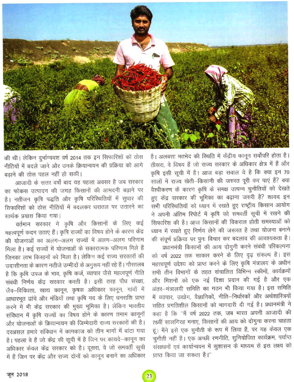 कुरुक्षेत्र : कृषि क्षेत्र की उपलब्धियां और चुनौतियां (30-06-2018)
