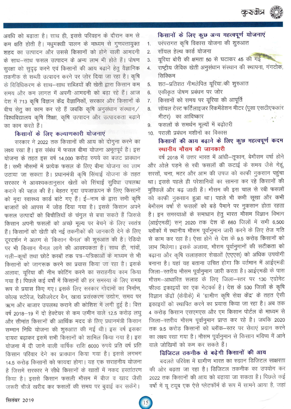 कुरुक्षेत्र : कृषि विकास और किसानों की समृद्धि के लिए पहल (05-10-2019)