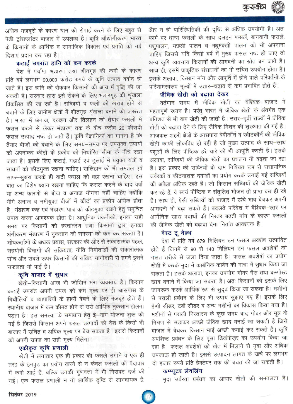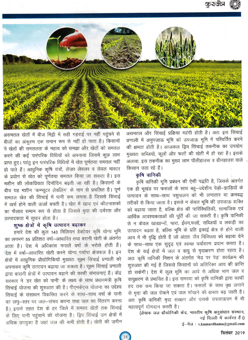 कुरुक्षेत्र : कृषि विकास में कृषि प्रबंधन की भूमिका (09-03-2019)