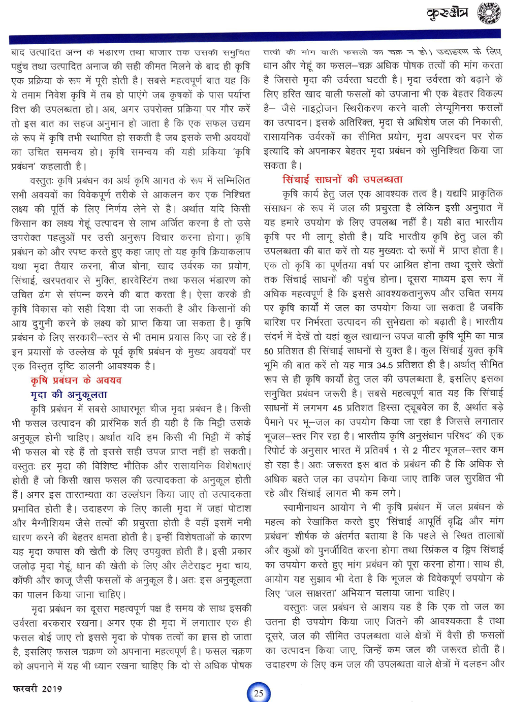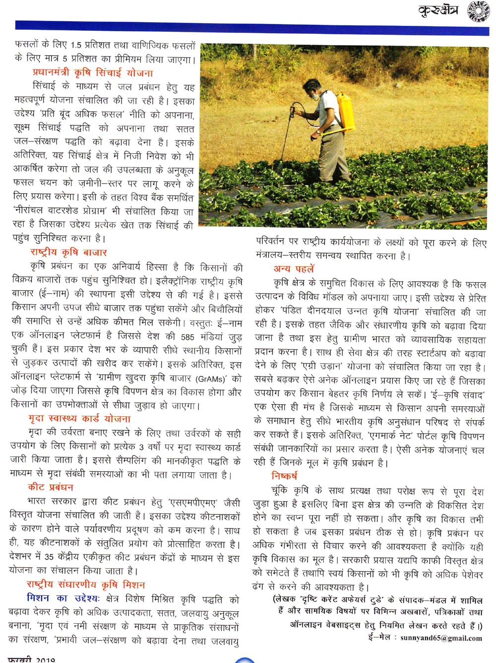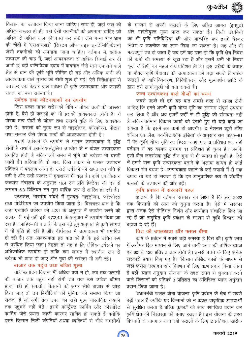 कुरुक्षेत्र : कृषि विकास में कृषि प्रबंधन की भूमिका (09-03-2019)