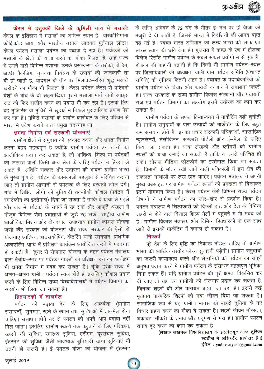 कुरुक्षेत्र: ग्रामीण पर्यटन कृषितर गतिविधियों का महत्वपूर्ण घटक (10-08-2019)