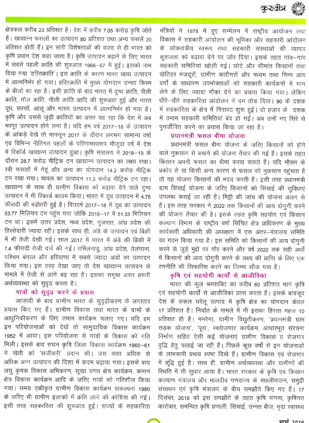 कुरुक्षेत्र : सतत कृषि विकास का लक्ष्य (30-03-2019)