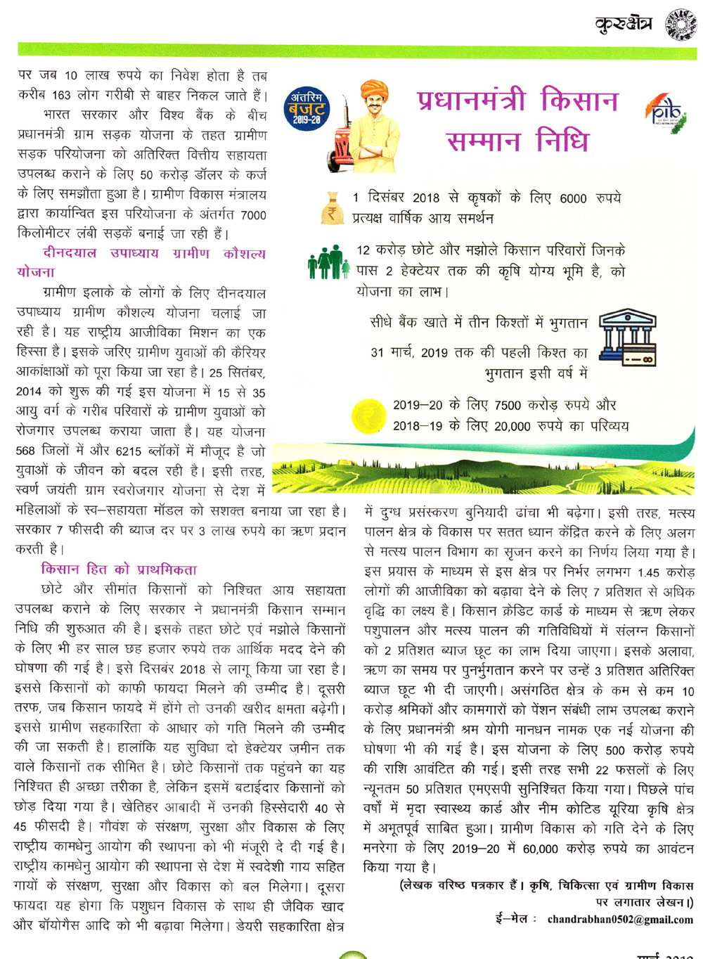 कुरुक्षेत्र : ग्रामीण विकास का आधार कृषि (16-03-2019)