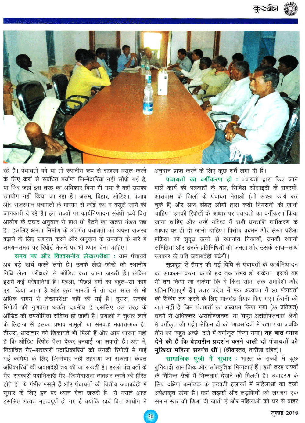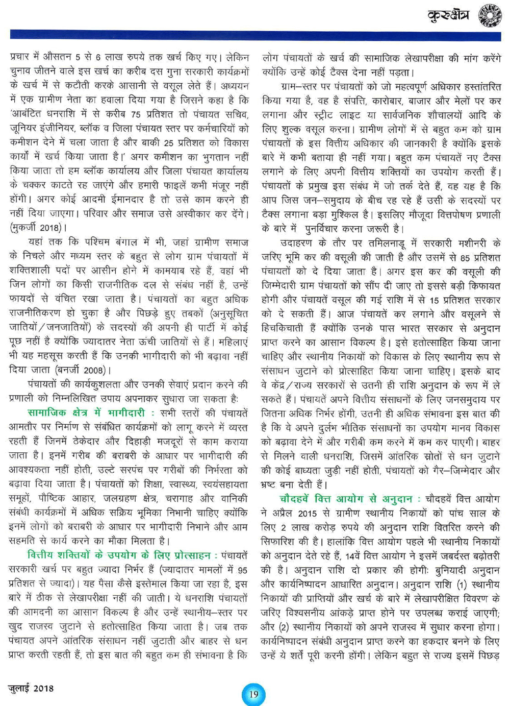 कुरुक्षेत्र : पंचायतों की वित्तीय सुदृढ़ता (11-08-2018)