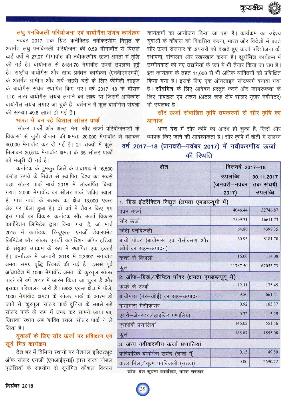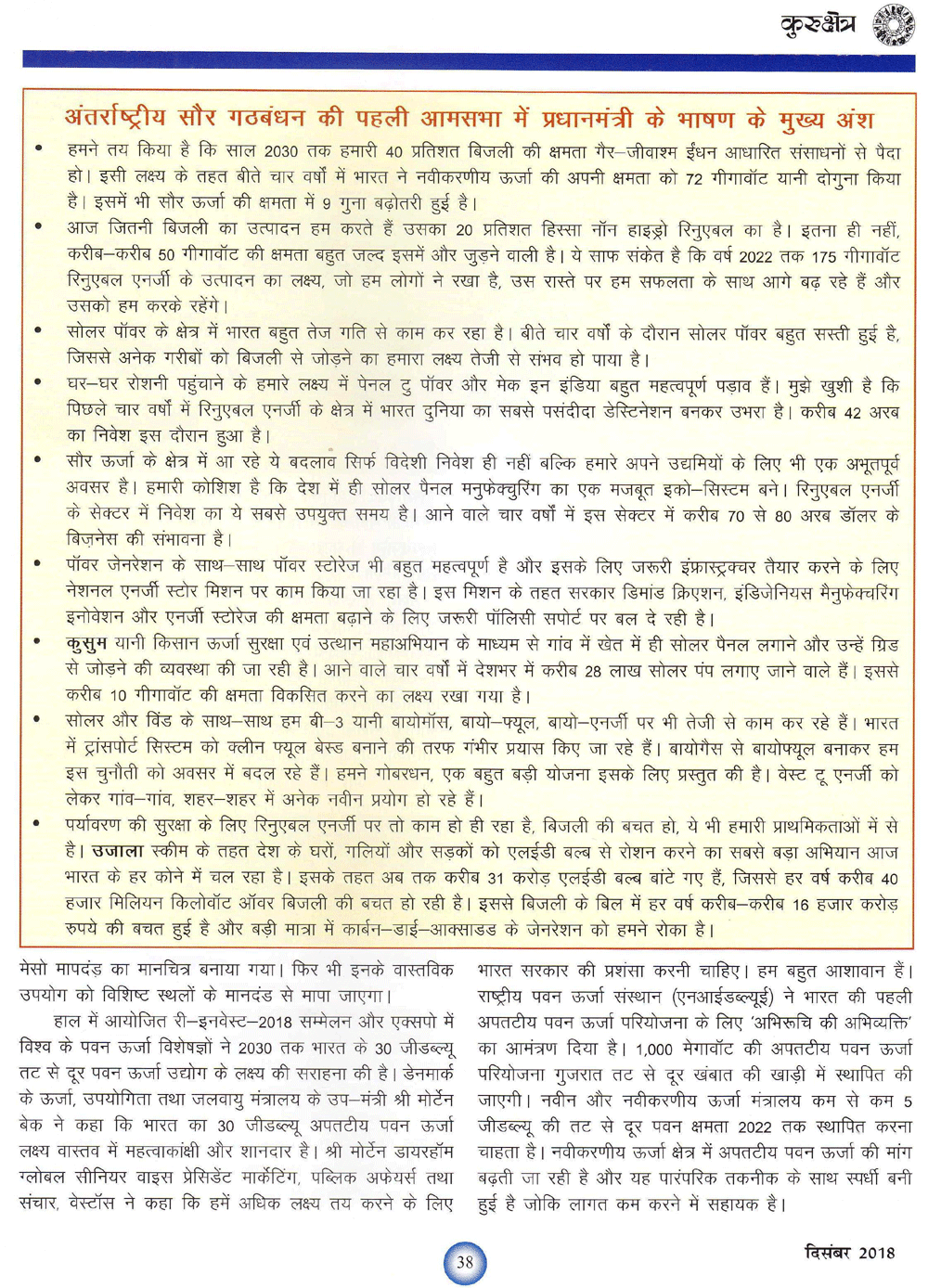कुरुक्षेत्र : भारत में अक्षय ऊर्जा
