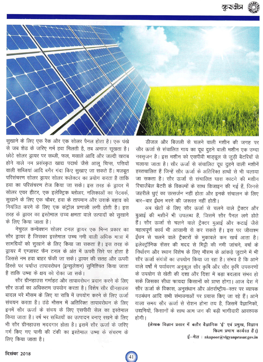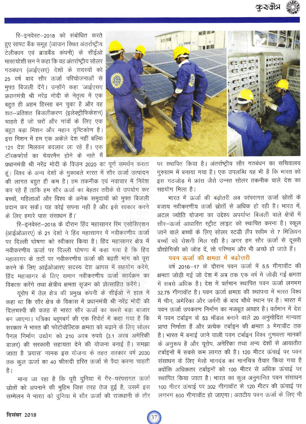 कुरुक्षेत्र : भारत रच रहा है सौर ऊर्जा के नए अध्याय (19-01-2019)