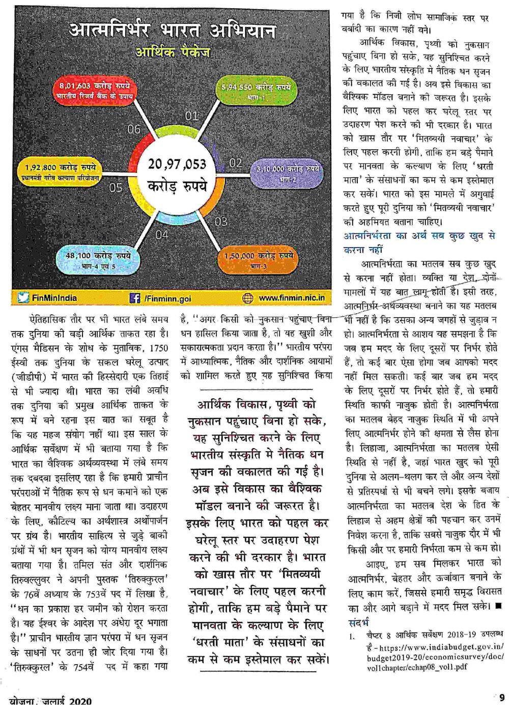 योजना : आत्मनिर्भर भारत के लिए नैतिक धन सृजन (29-08-2020)