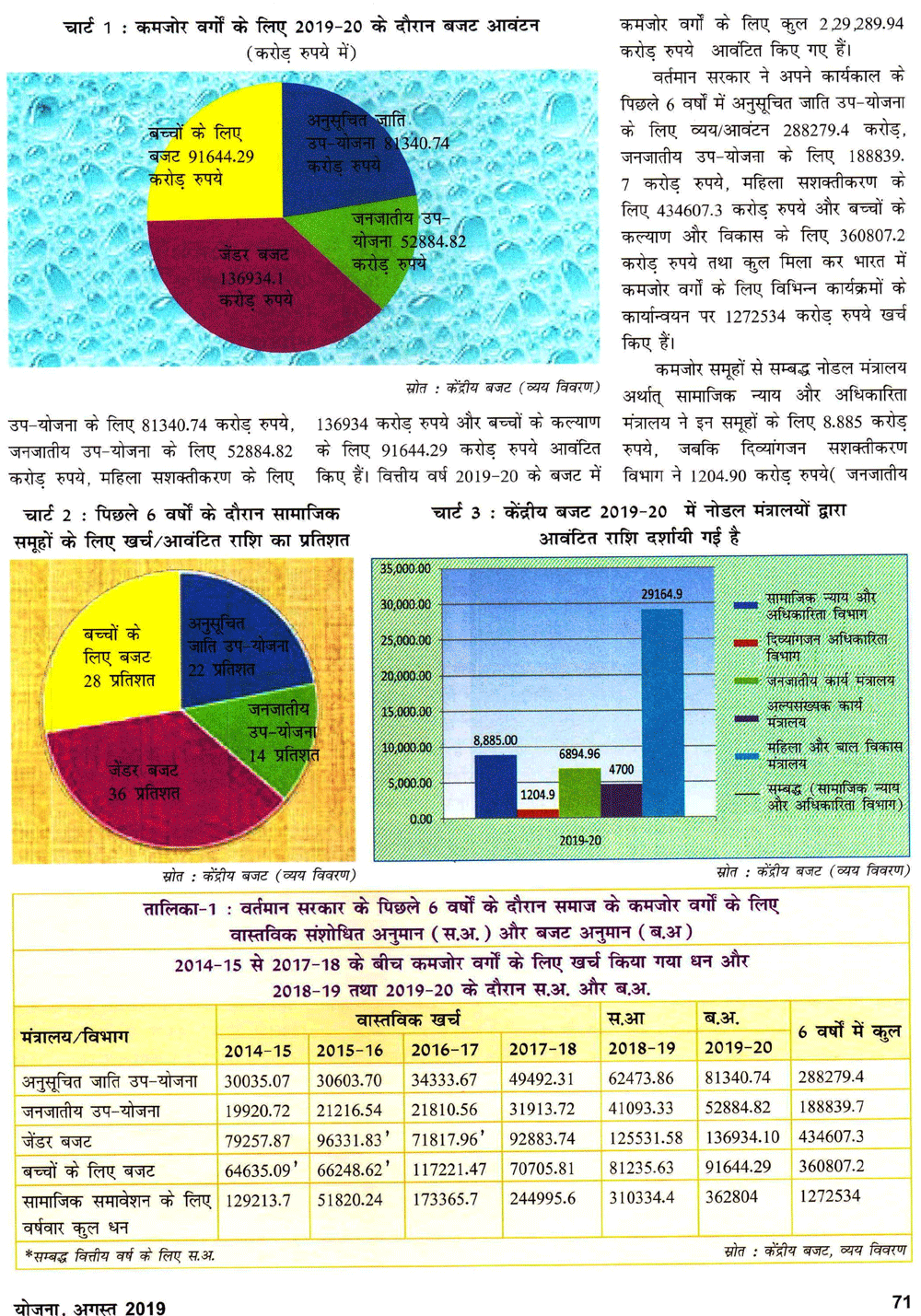 योजना : कमज़ोर वर्गों का कल्याण और सशक्तीकरण (07-09-2019)