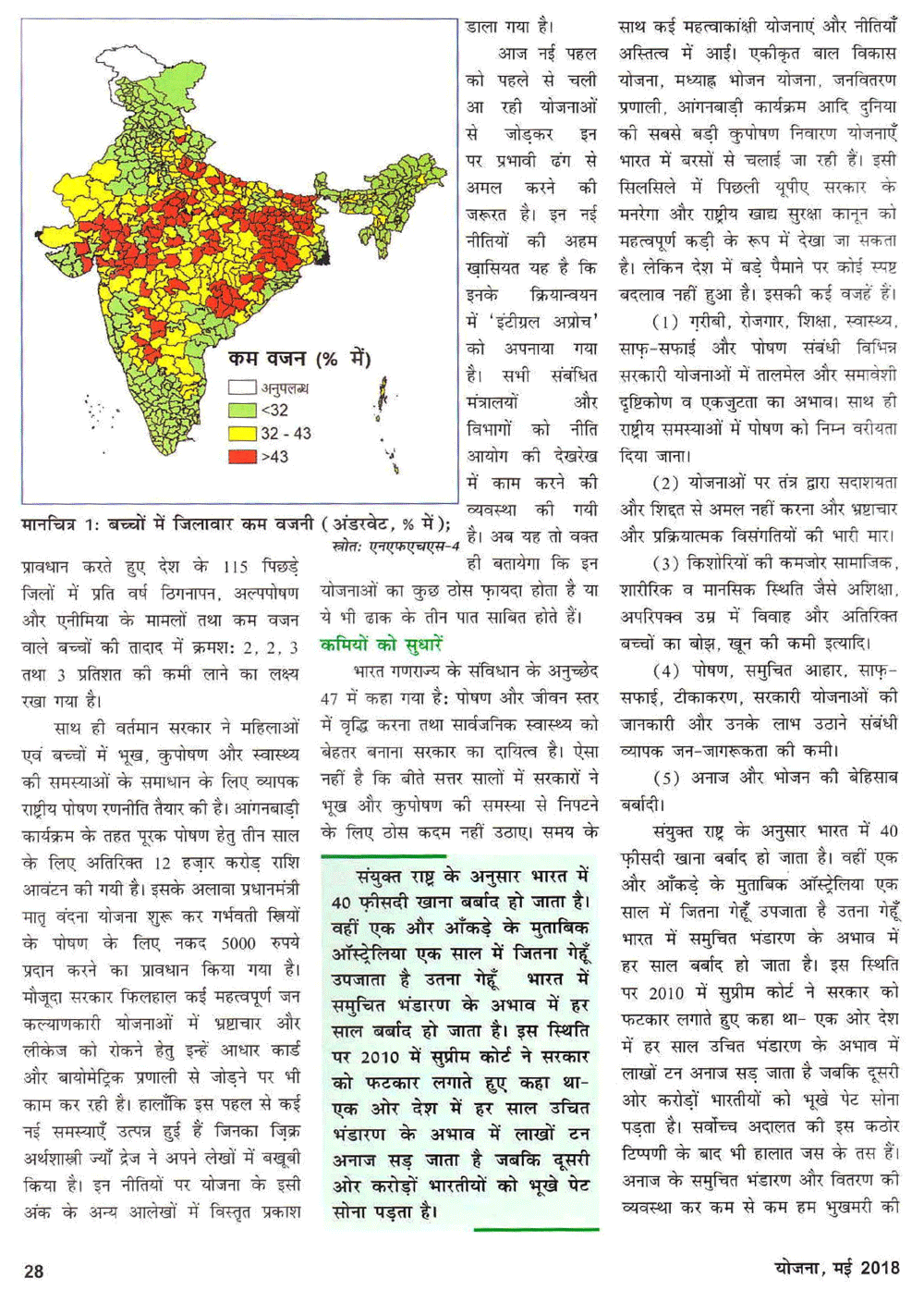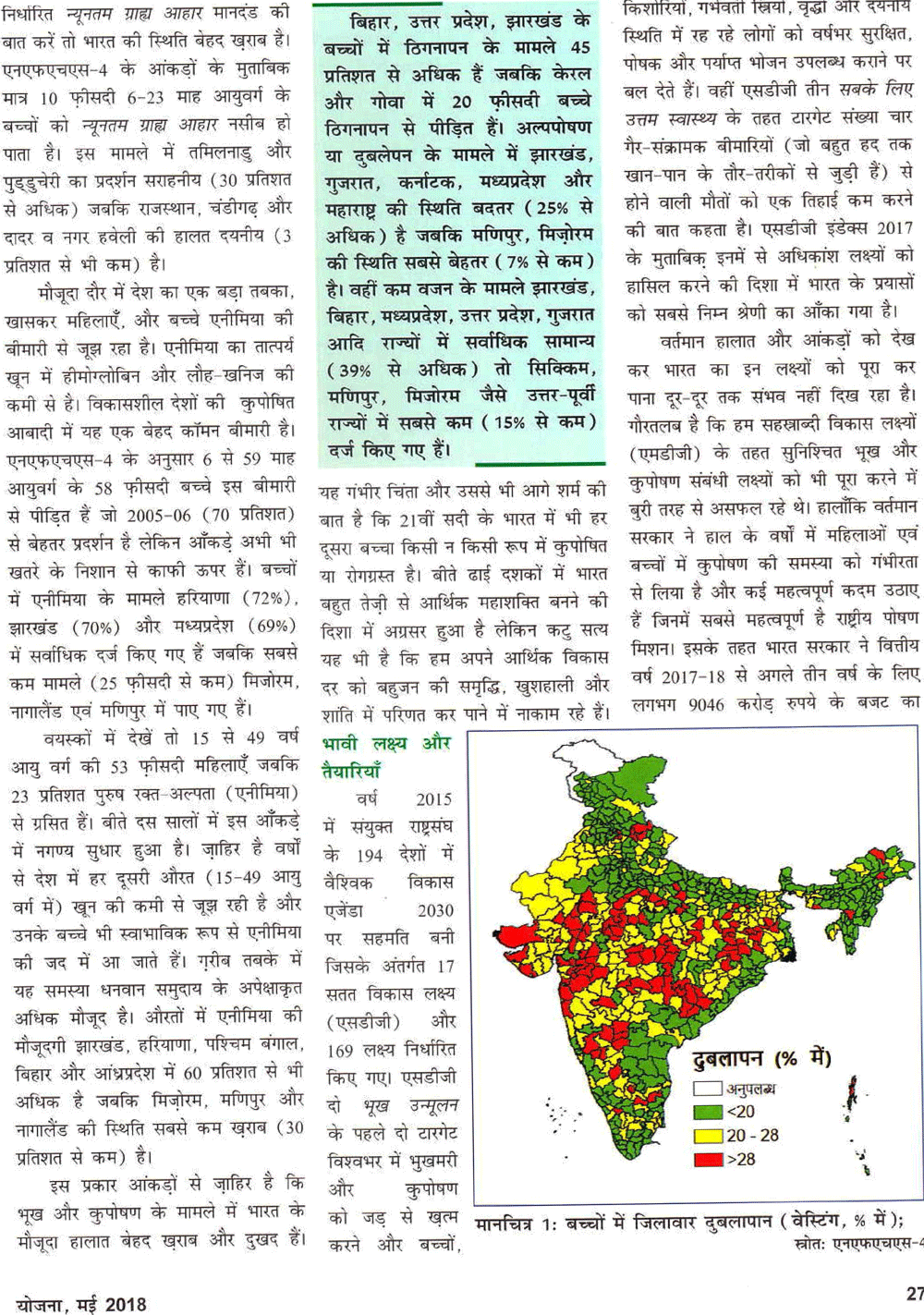 योजना : कुपोषण से लड़ाई : कठिन डगर (09-06-2018)