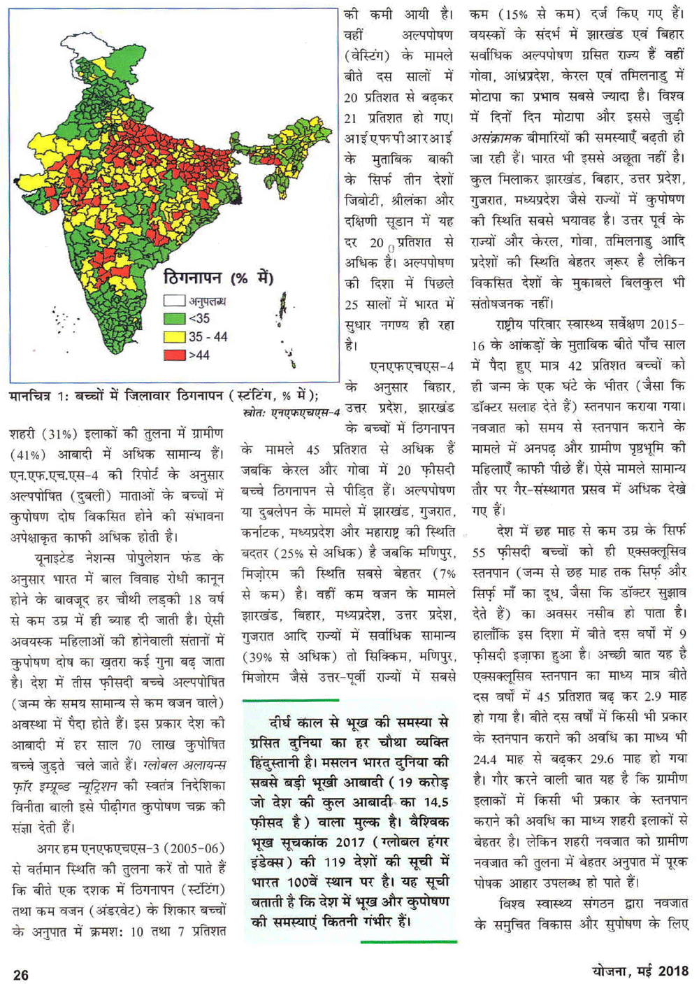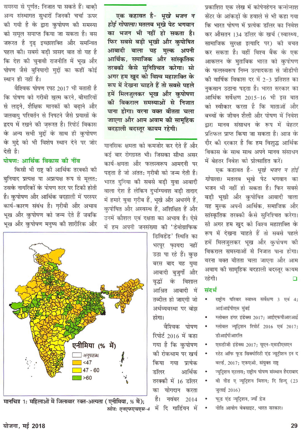 योजना फरवरी 2016 : कुपोषण मुक्त स्वस्थ भारत : कृषिगत चुनौतियां व अवसर ।