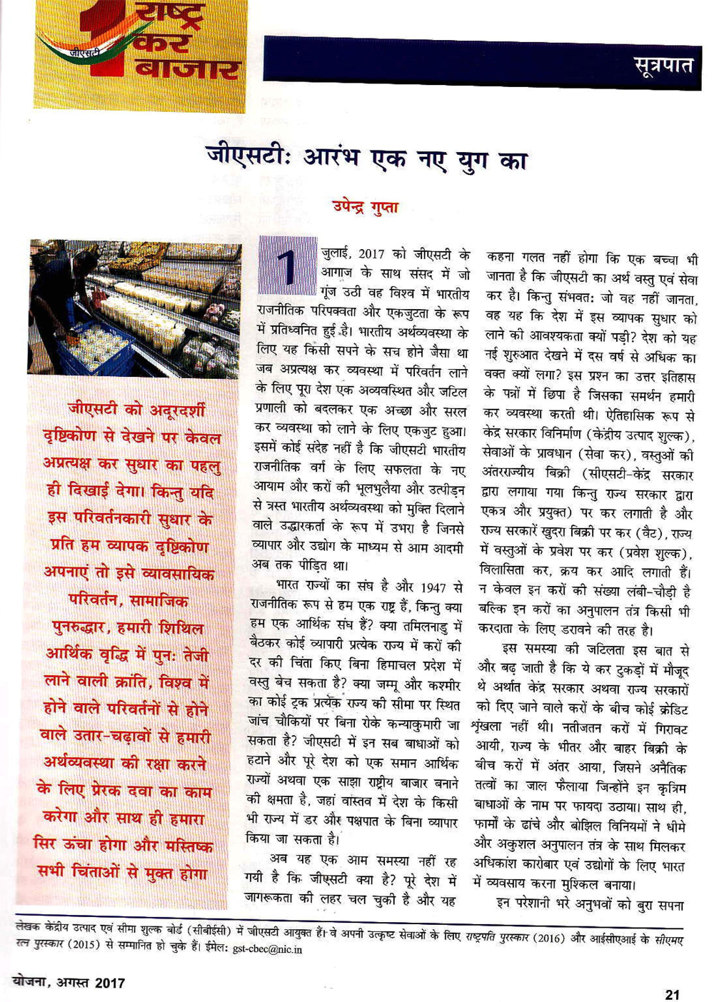 योजना: जीएसटी-आरंभ एक नए युग का (02-09-2017)