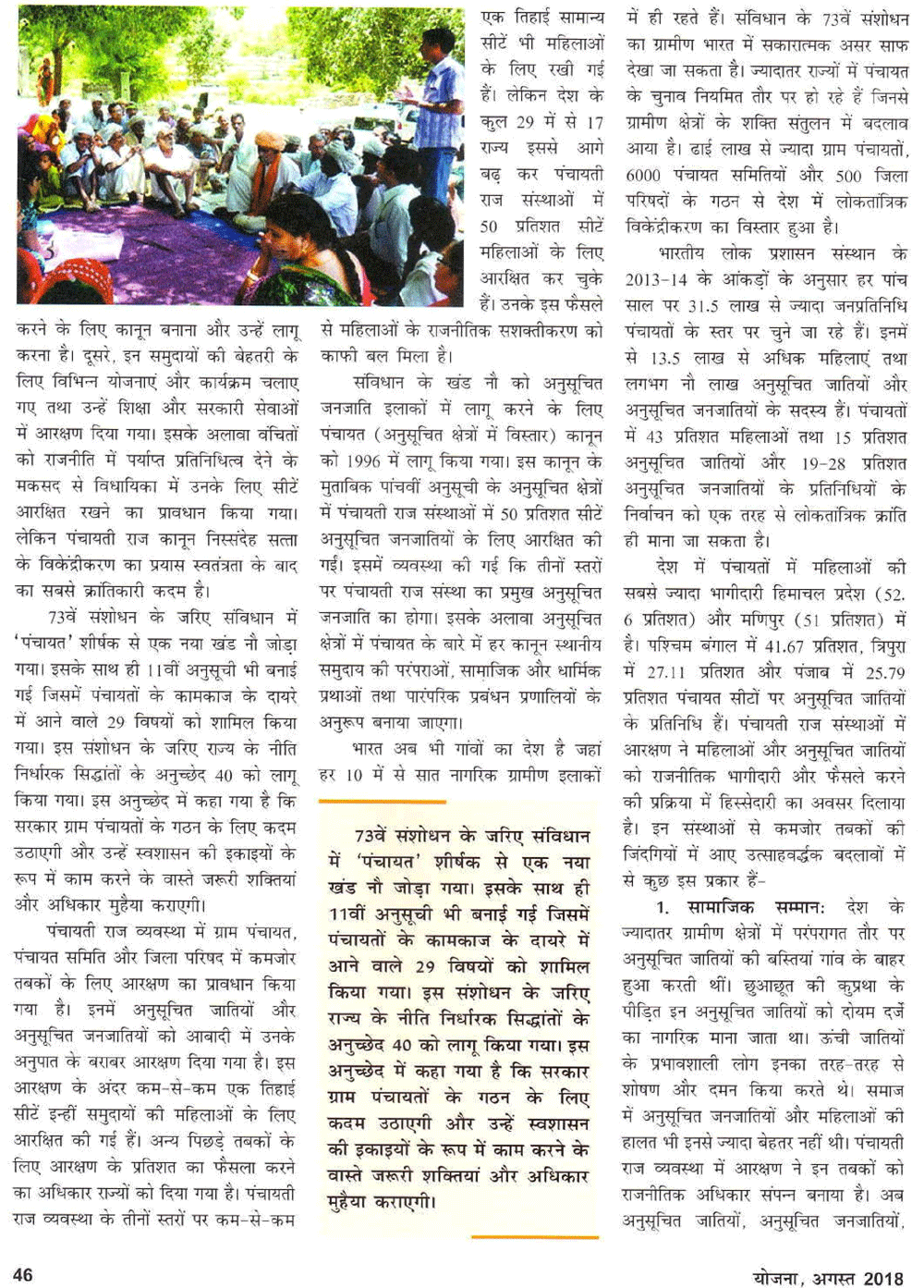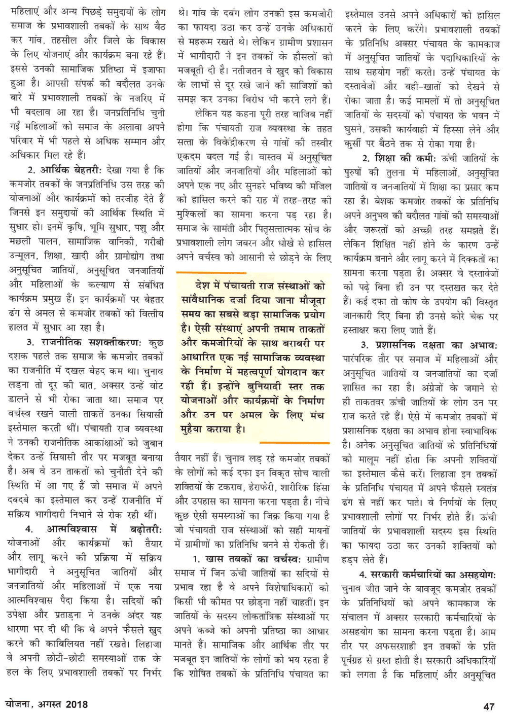 योजना : नए समाज की बुनियाद पंचायती राज (01-09-2018)