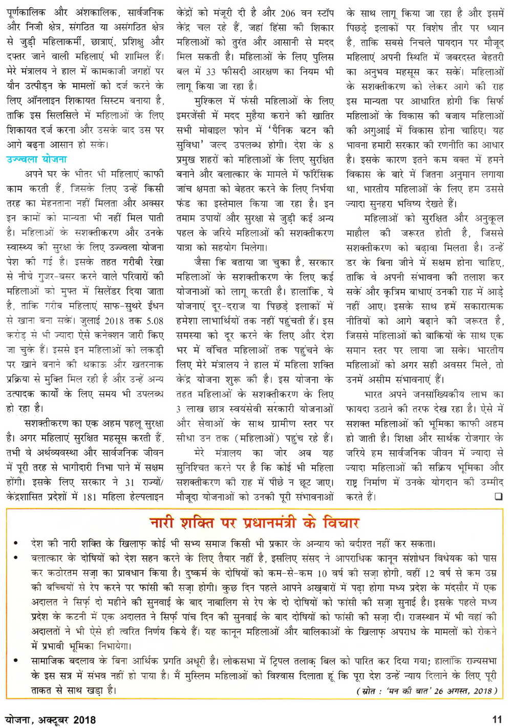 योजना : महिलाओं के नेतृत्व में विकास से राष्ट्र का सशक्तीकरण (10-11-2018)