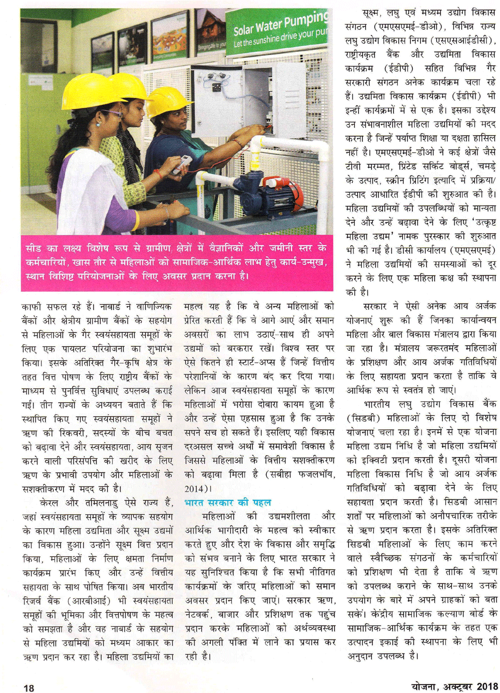 योजना : महिला उद्यमिता आर्थिक सशक्तीकरण का जरिया (17-11-2018)