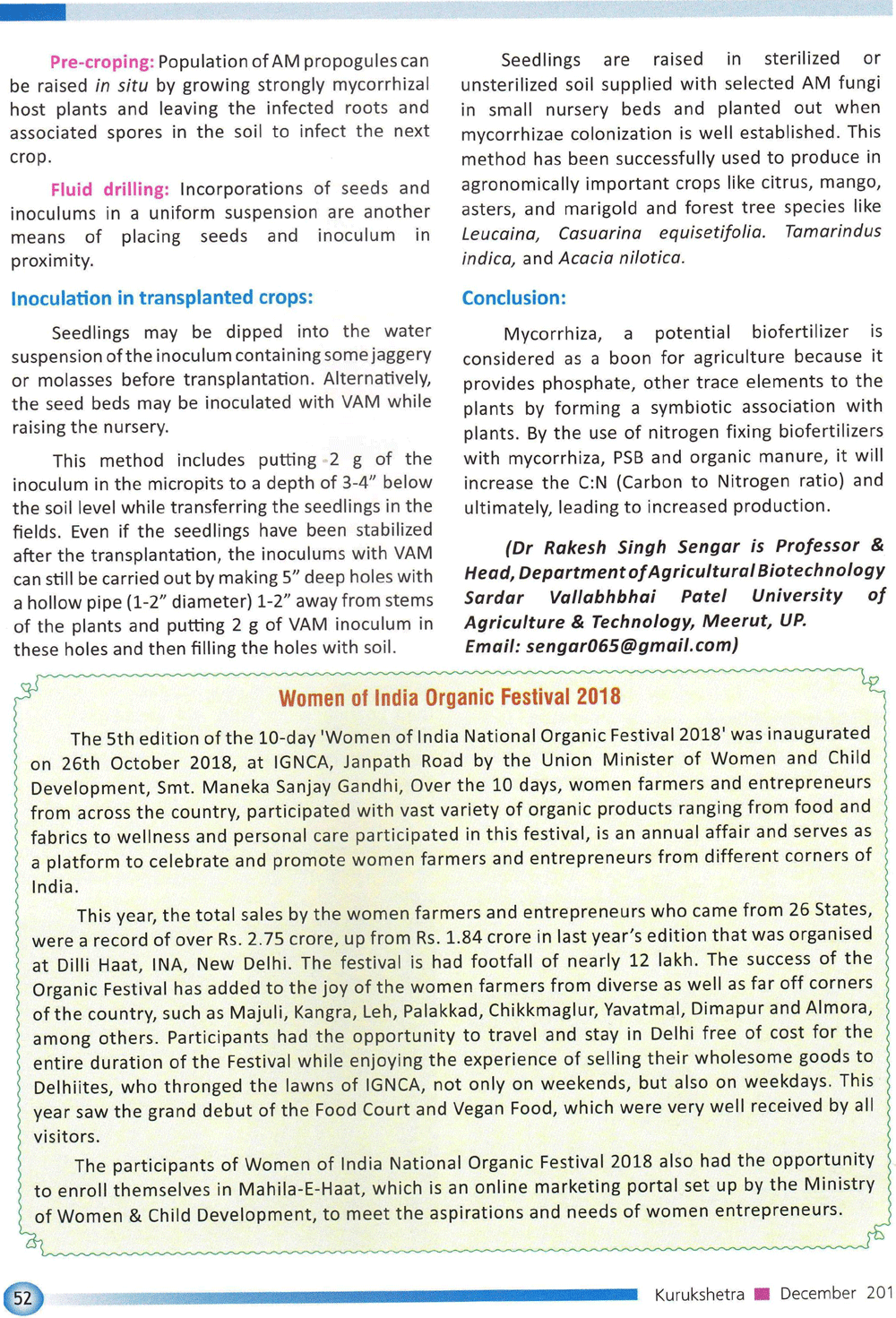 Kurukshetra : Bio Fertilizers for Sustainable Food Production (22-12-2018)