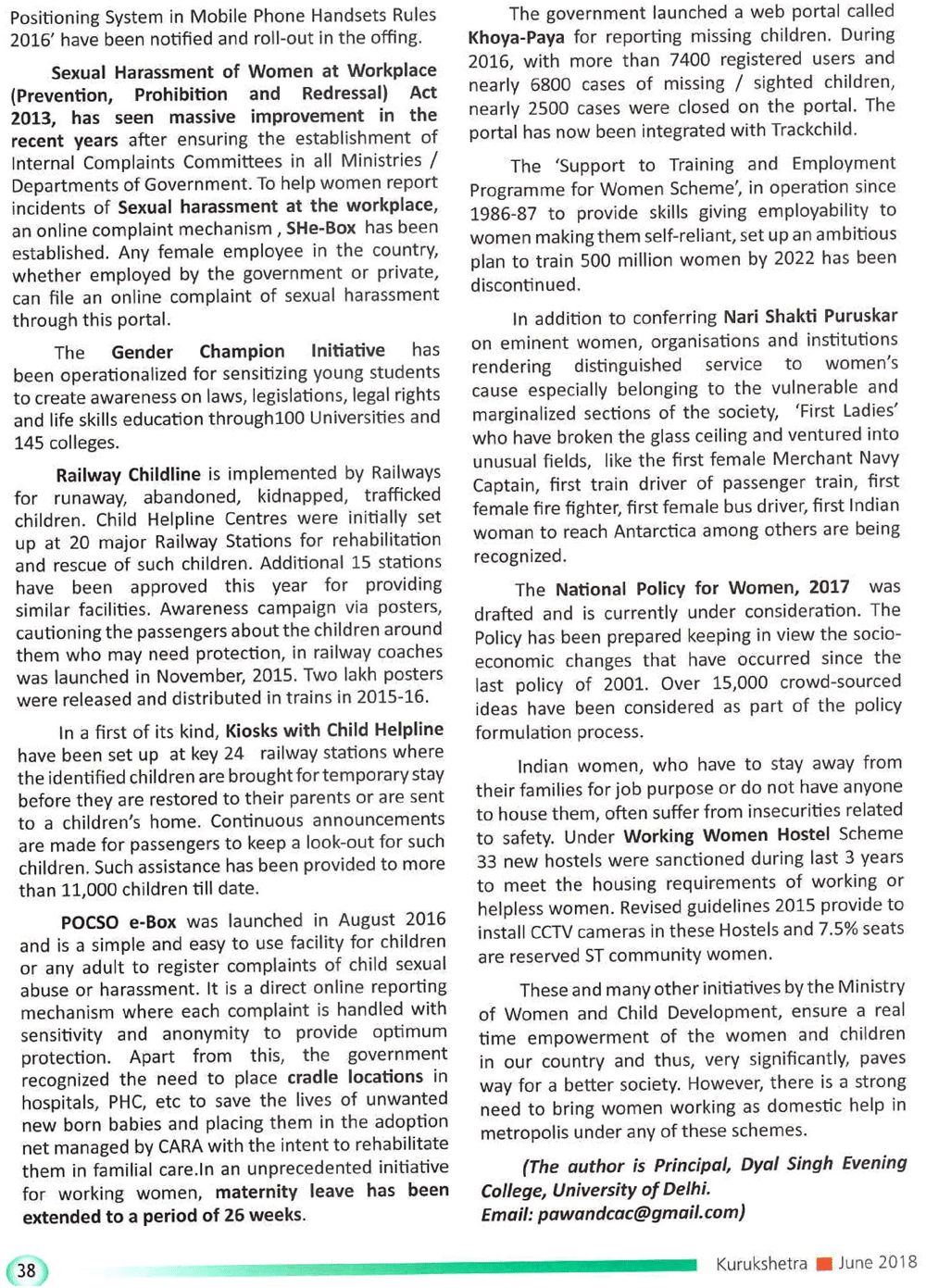 Kurukshetra : EMPOWERING WOMEN AND CHILDREN IN INDIA (23-06-2018)
