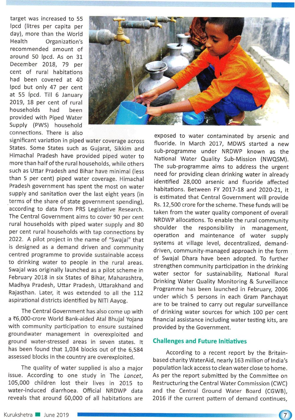 Kurukshetra : Ensuring Safe and Adequate Drinking Water (15-06-2019)