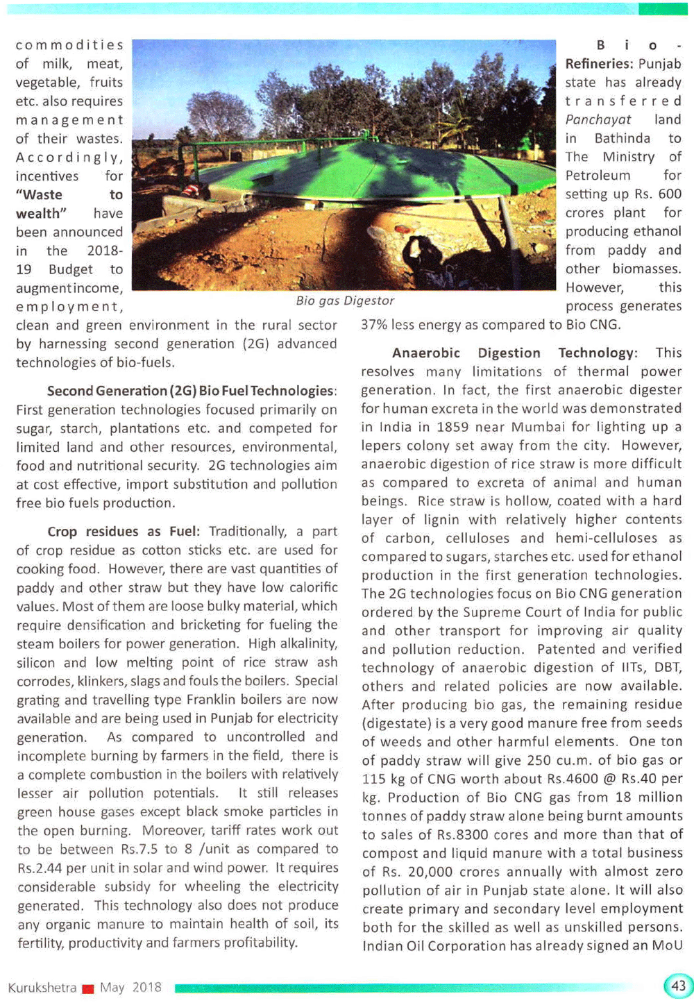 Kurukshetra: Generating Clean Energy from Waste (12-05-2018)