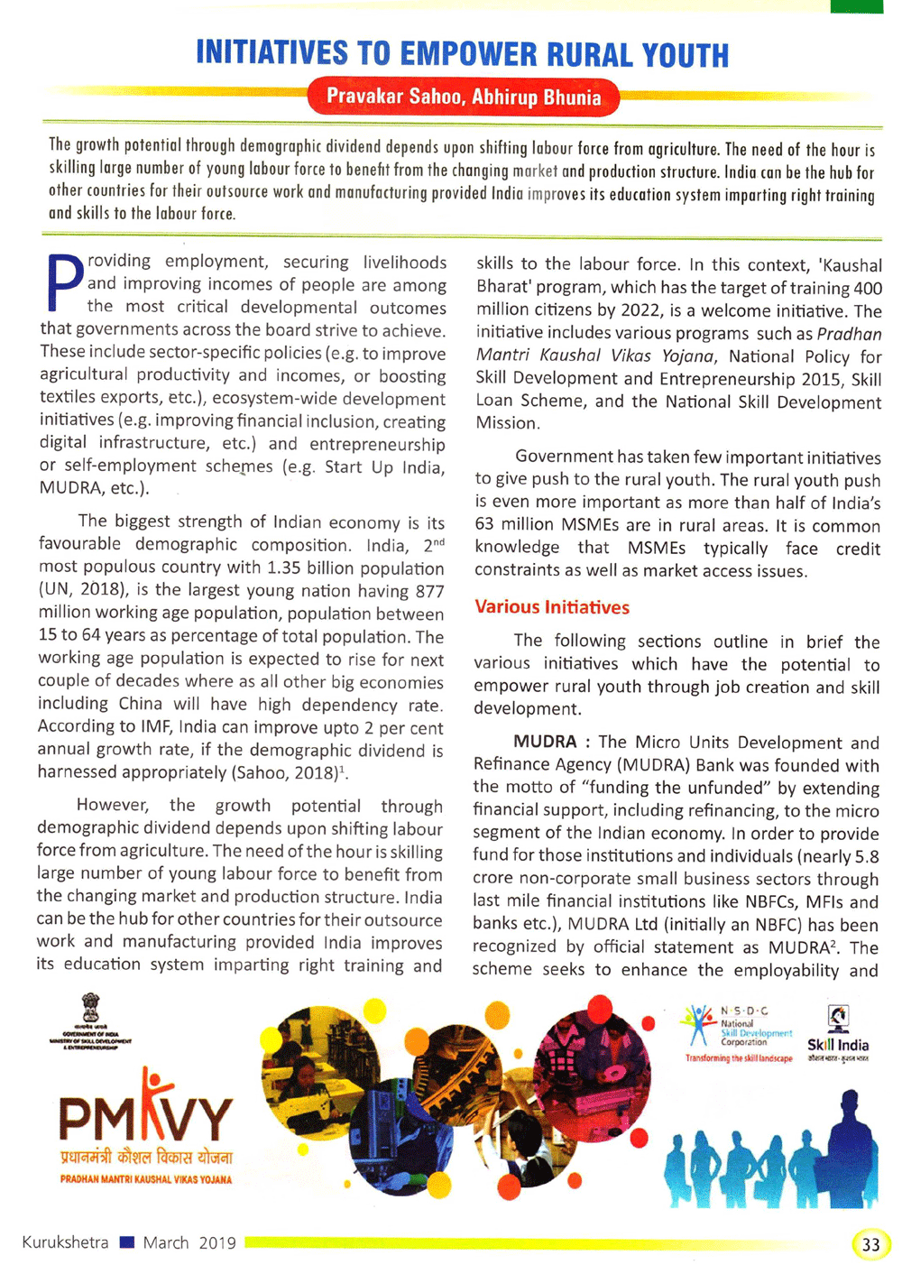 Kurukshetra : Initiatives To Empower Rural Youth (30-03-2019)