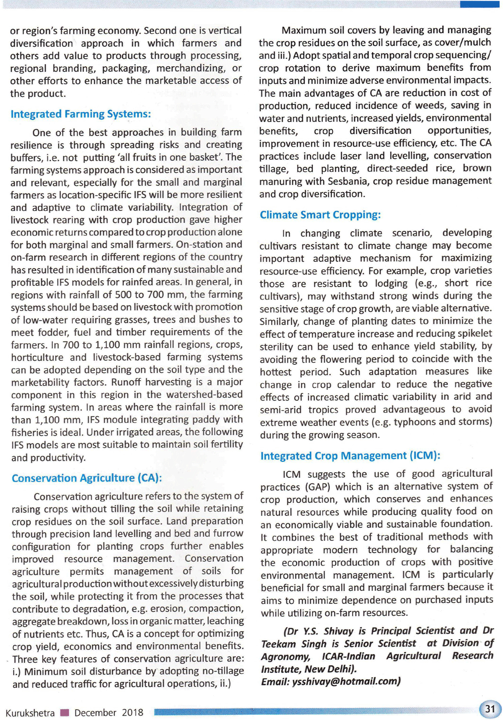 Kurukshetra : Status,Potential and New Technologies in Organic Farming (18-05-2019)