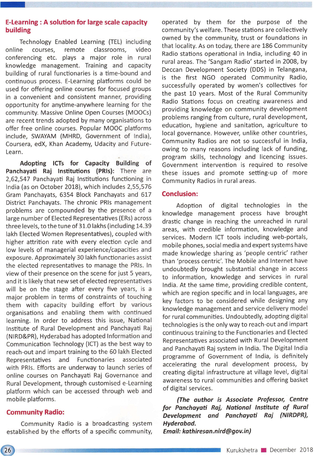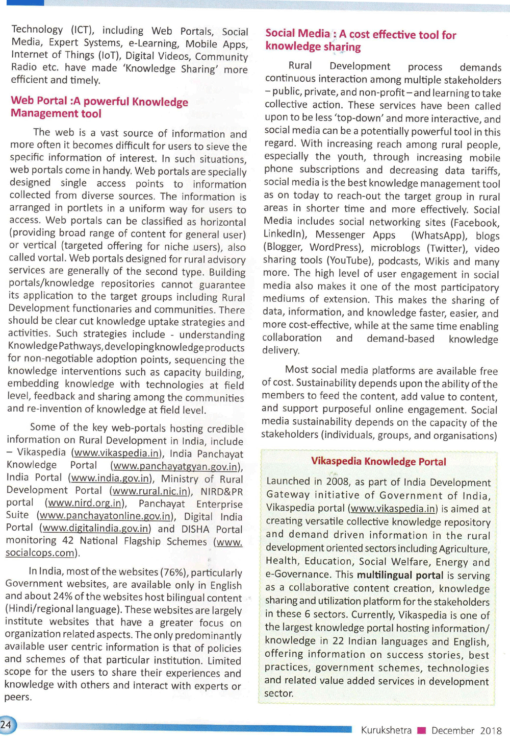 Kurukshetra : Knowledge Management Through Digital Technologies (12-01-2019)