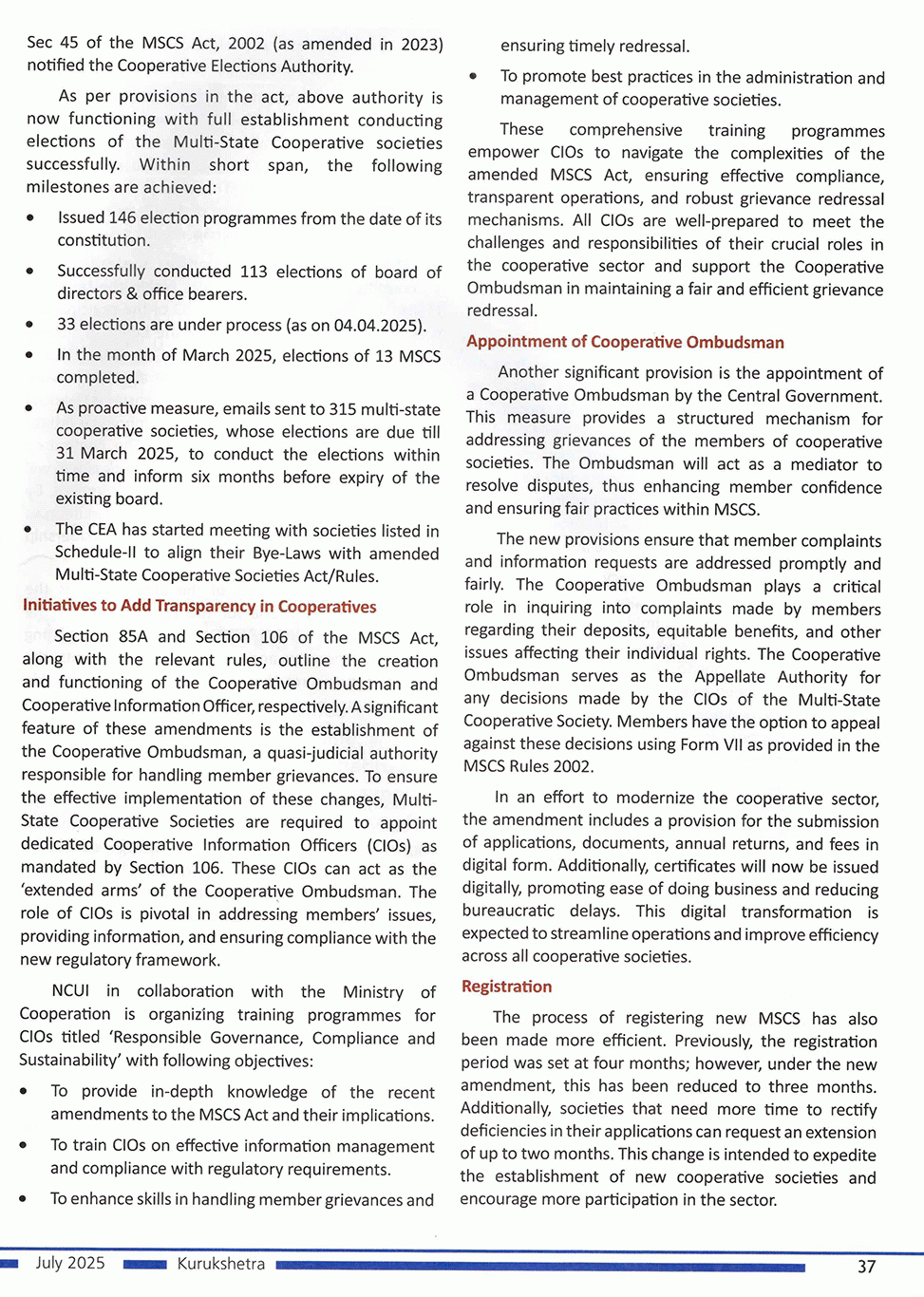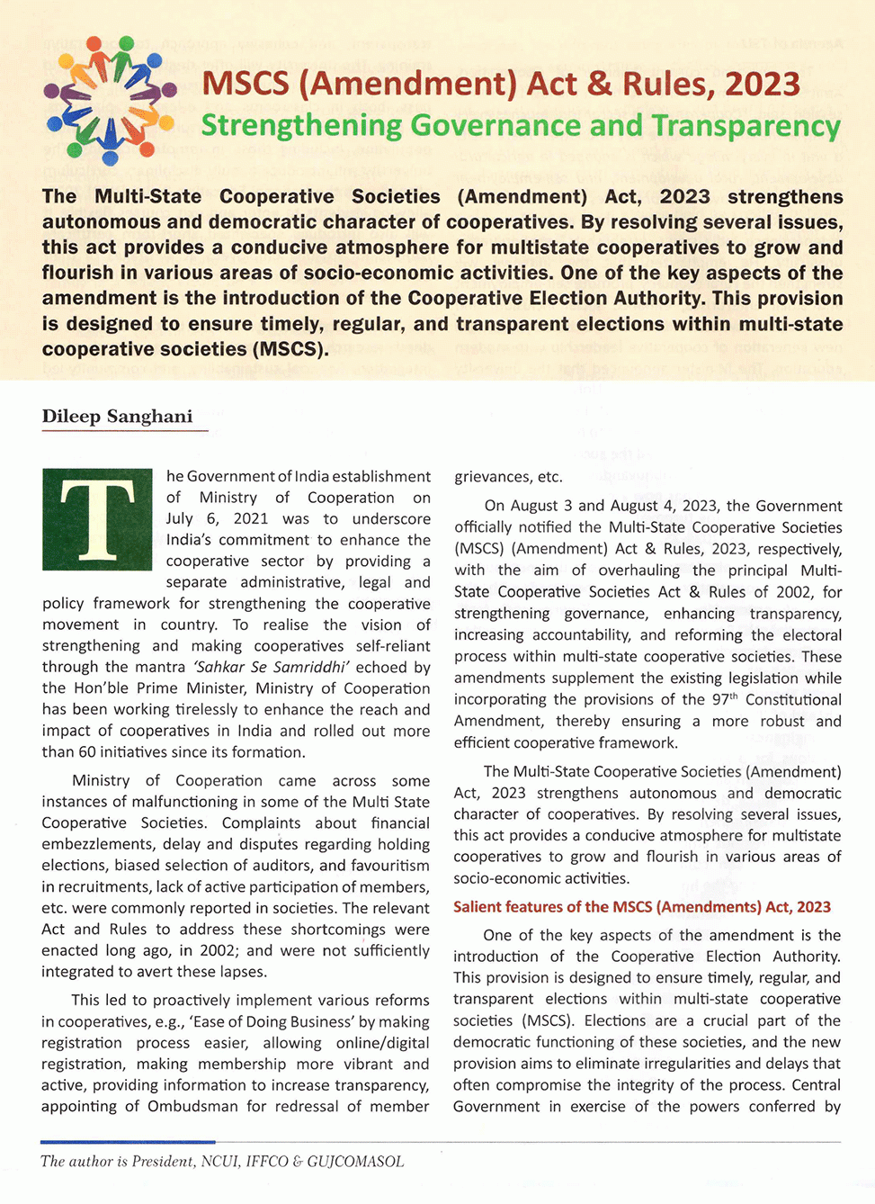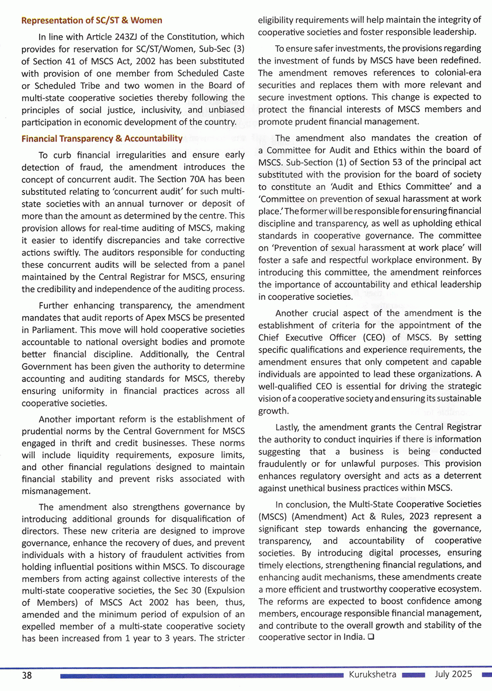 Kurukshetra : MSCS (Amendment) Act & Rules, 2023 Strengthening Governance and Transparency