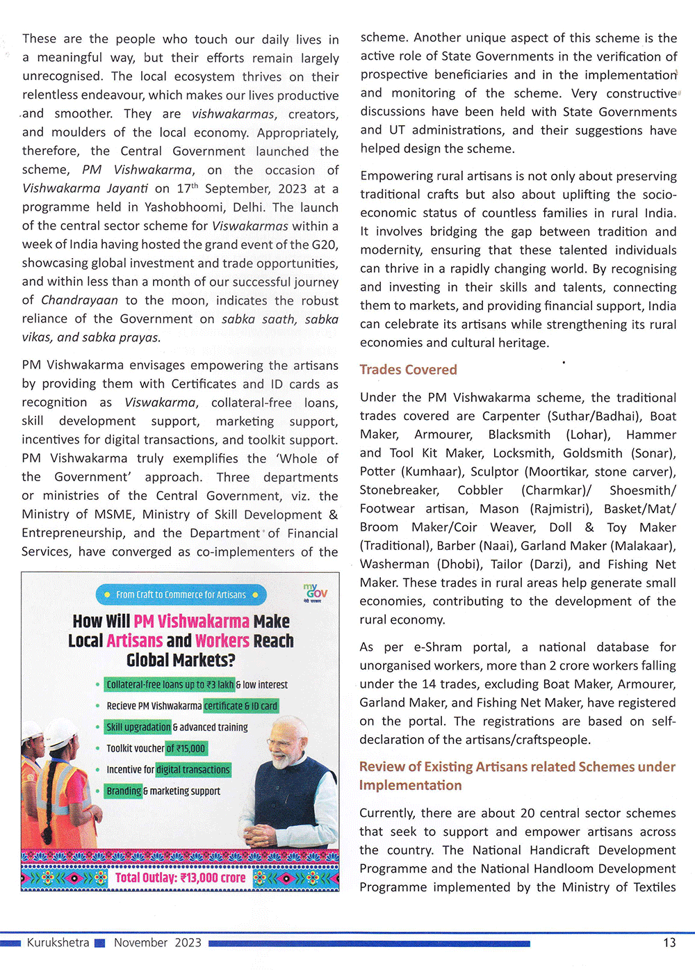 Kurukshetra : PM Vishwakarma Yojana Empowering Artisans