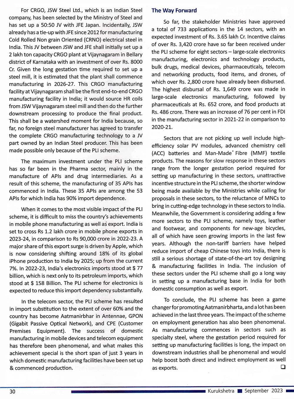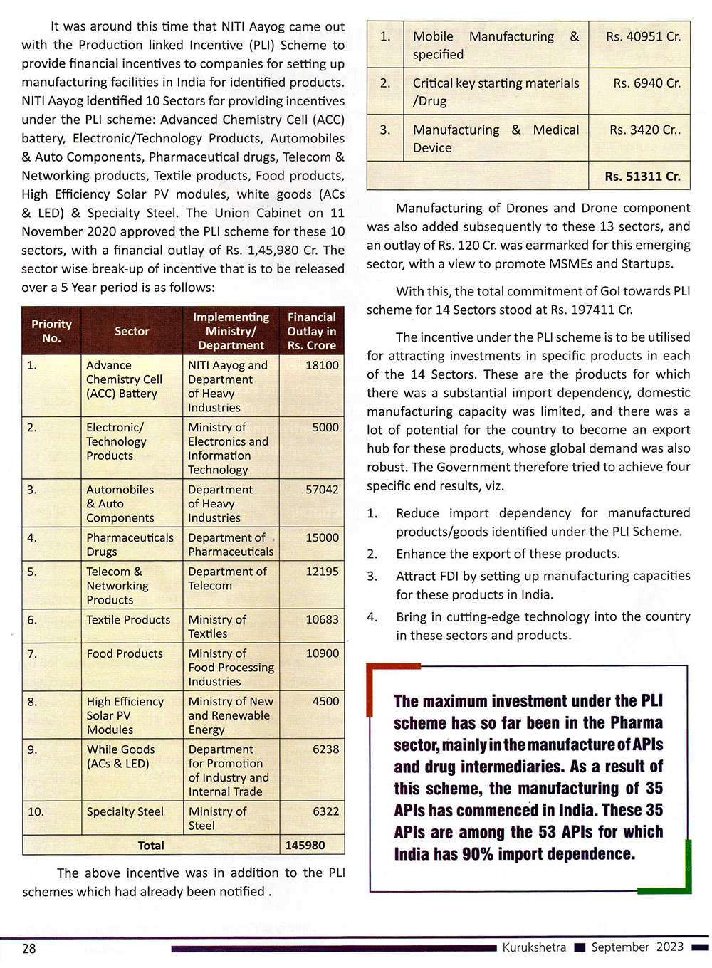 Kurukshetra : Production Linked Incentive Scheme for Aatmanirbhar Bharat