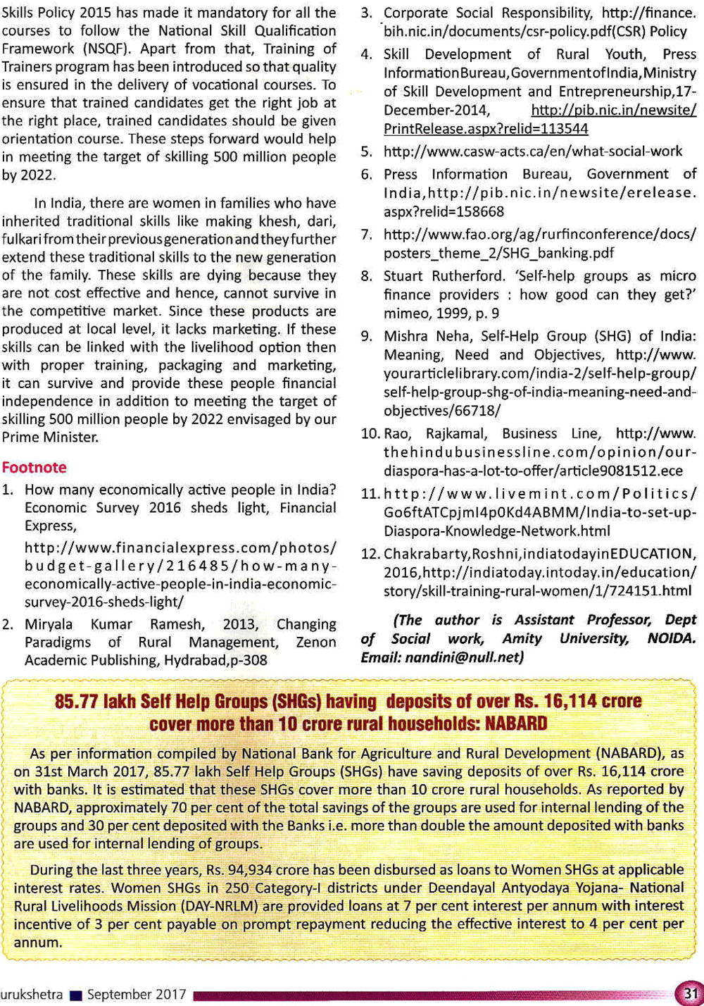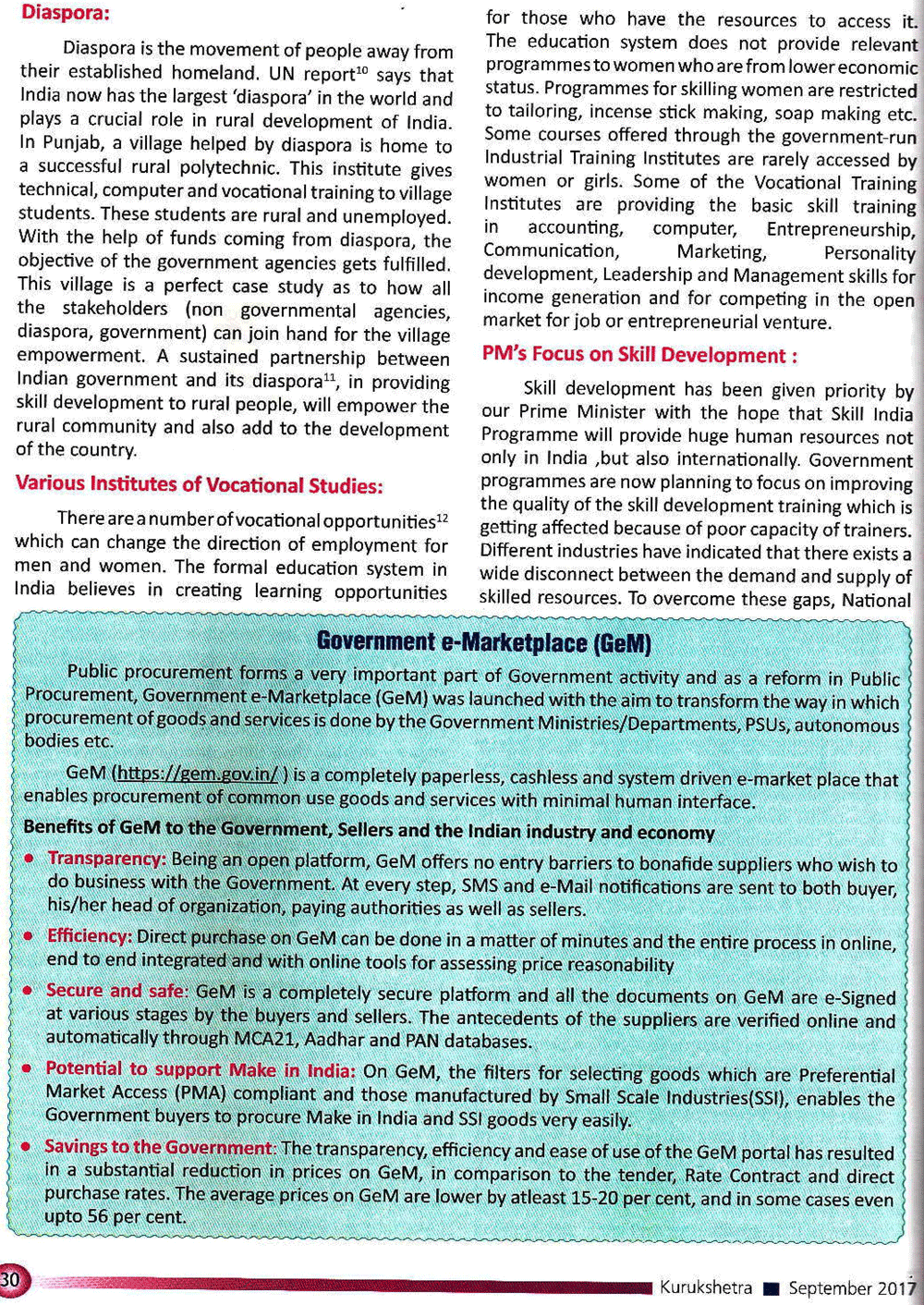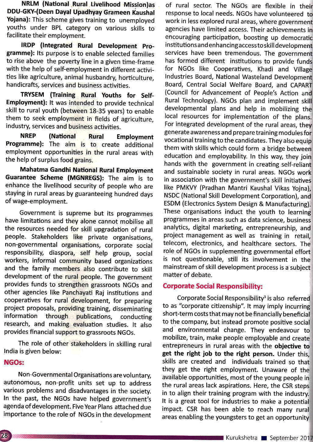 Kurukshetra: Skilling Initiatives in Rural India: An Analysis (30-09-2017)