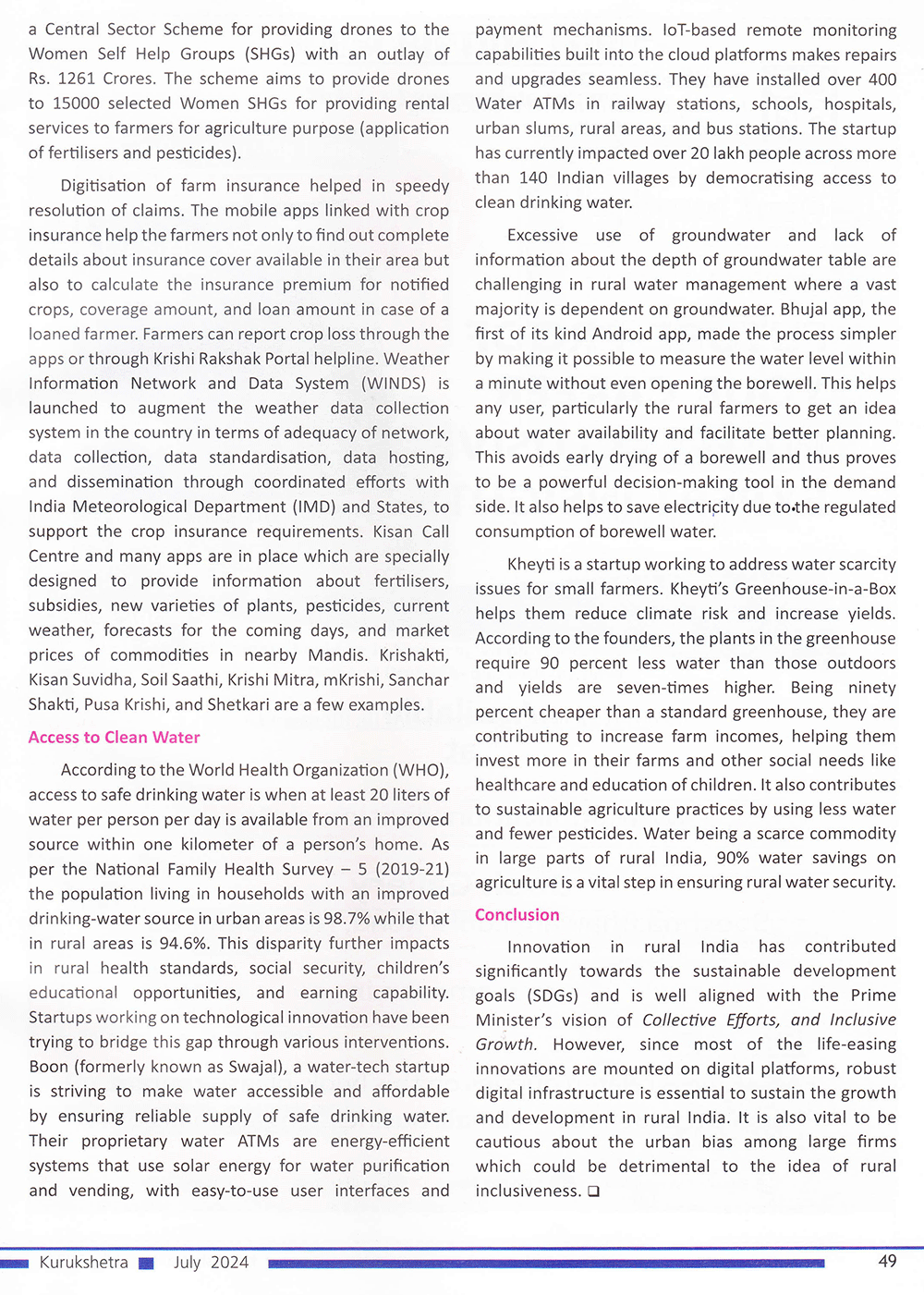 Kurukshetra : Rural India: Innovation for Inclusiveness