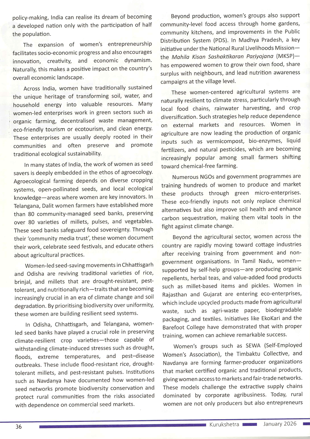 Kurukshetra : Rural Women Entrepreneurs: Empowering a New India (05-12-2020)