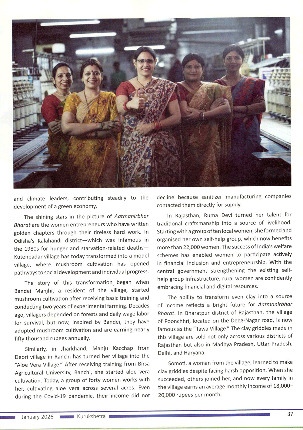 Kurukshetra : Rural Women Entrepreneurs The Foundation of ‘Aatmanirbhar Bharat’