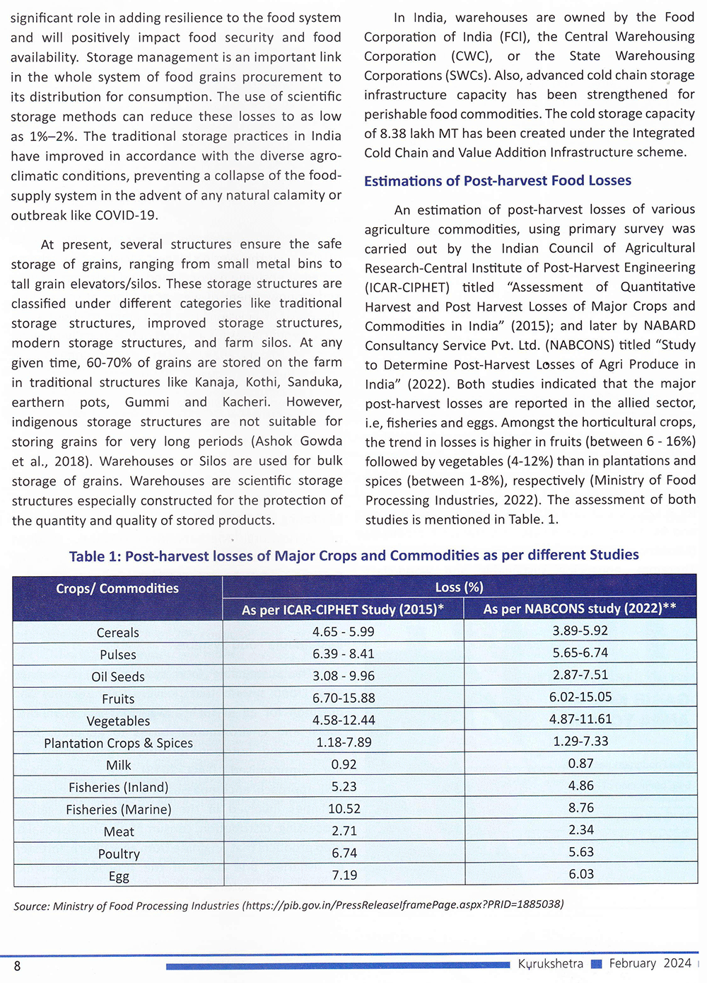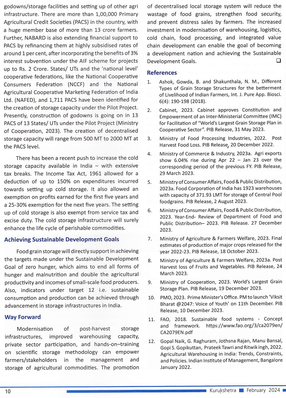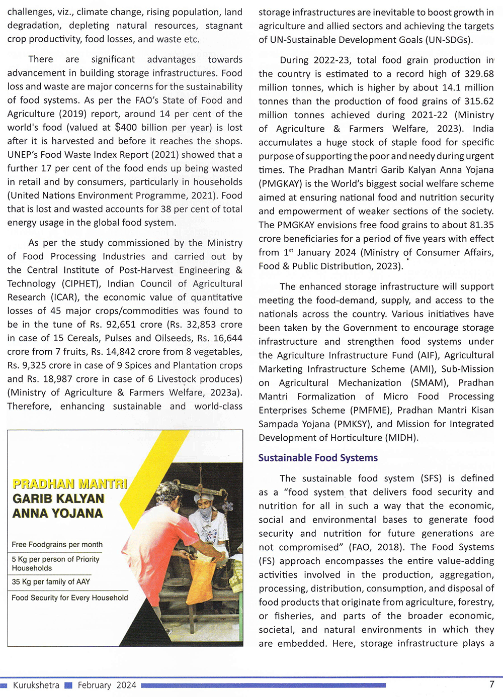 Kurukshetra : Shaping Sustainable Food Systems with Storage Infrastructure A Pathway to Viksit Bharat