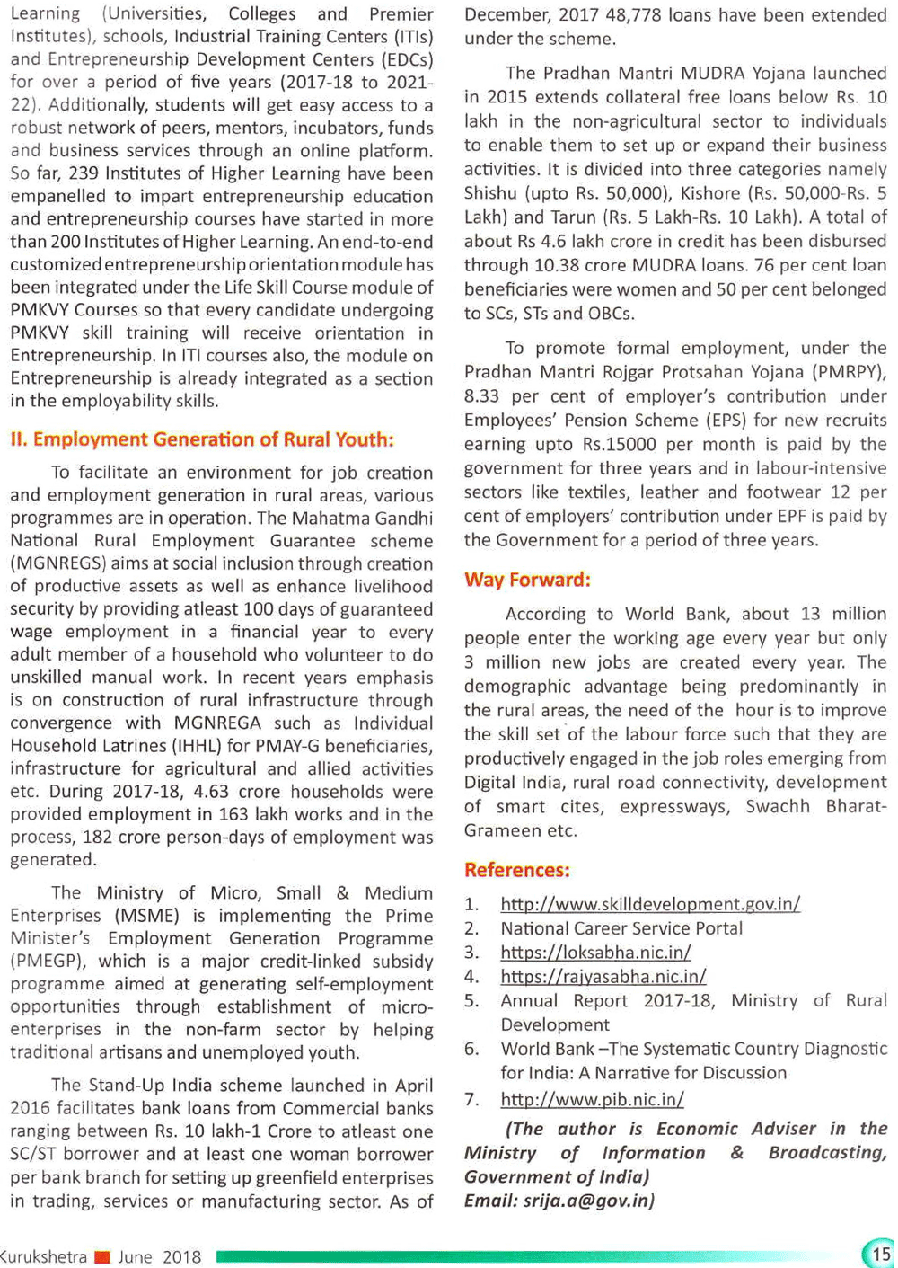 Kurukshetra Aug 2016: Development of Education and Skills for rural youth