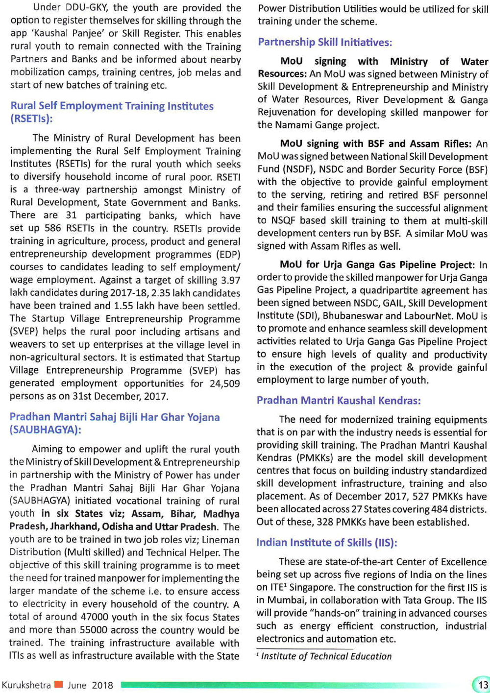 Kurukshetra : Skill Development And Employment For Rural Youth (07-07-2018)