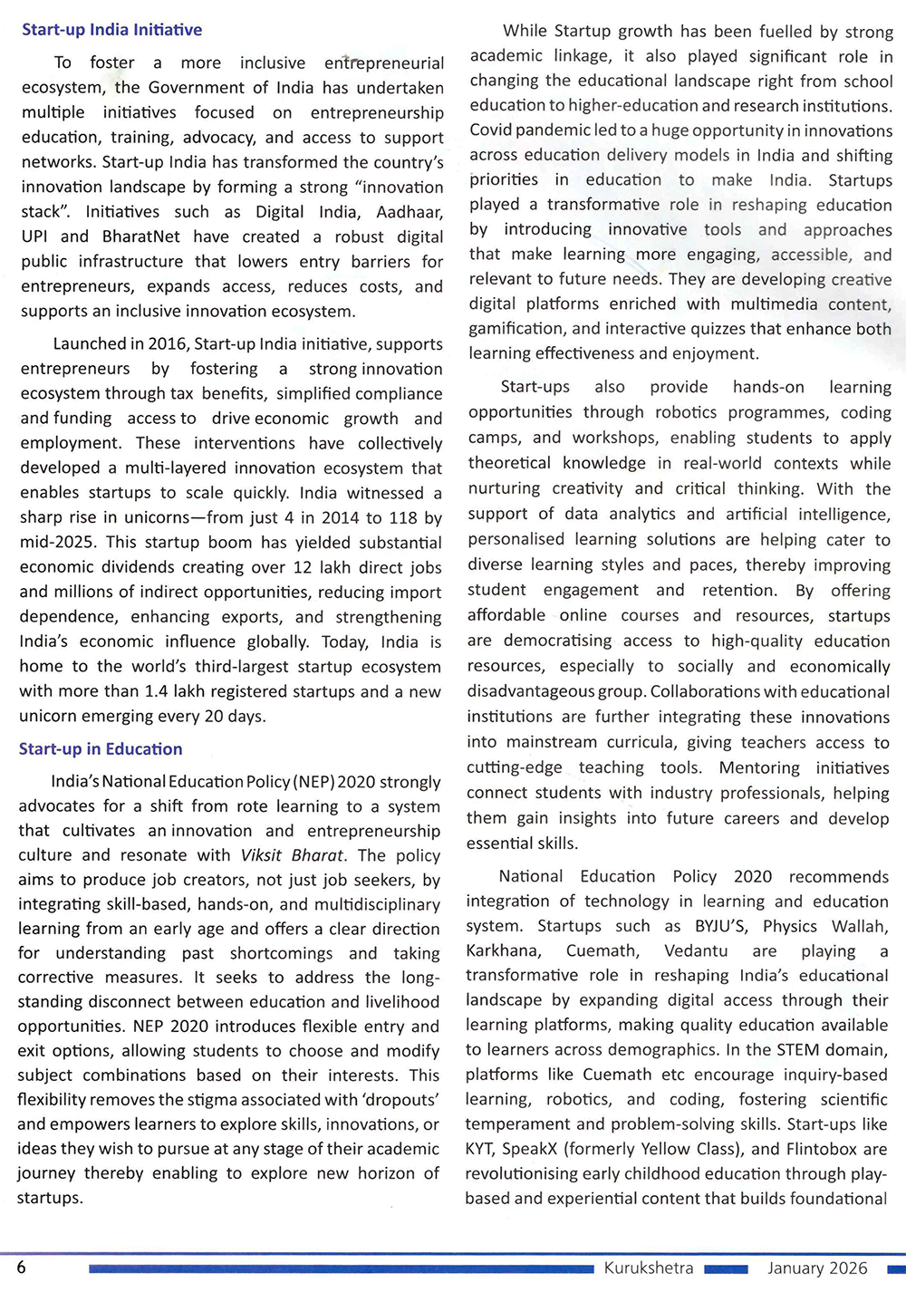 Kurukshetra : Start-ups Transforming the Landscape of Education & Skill Development
