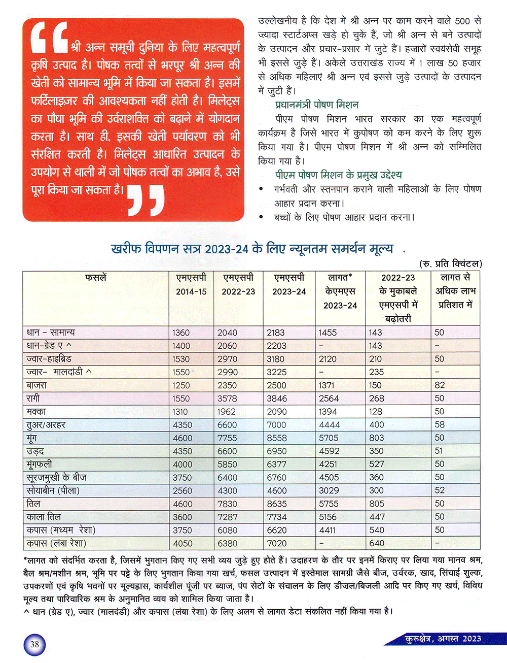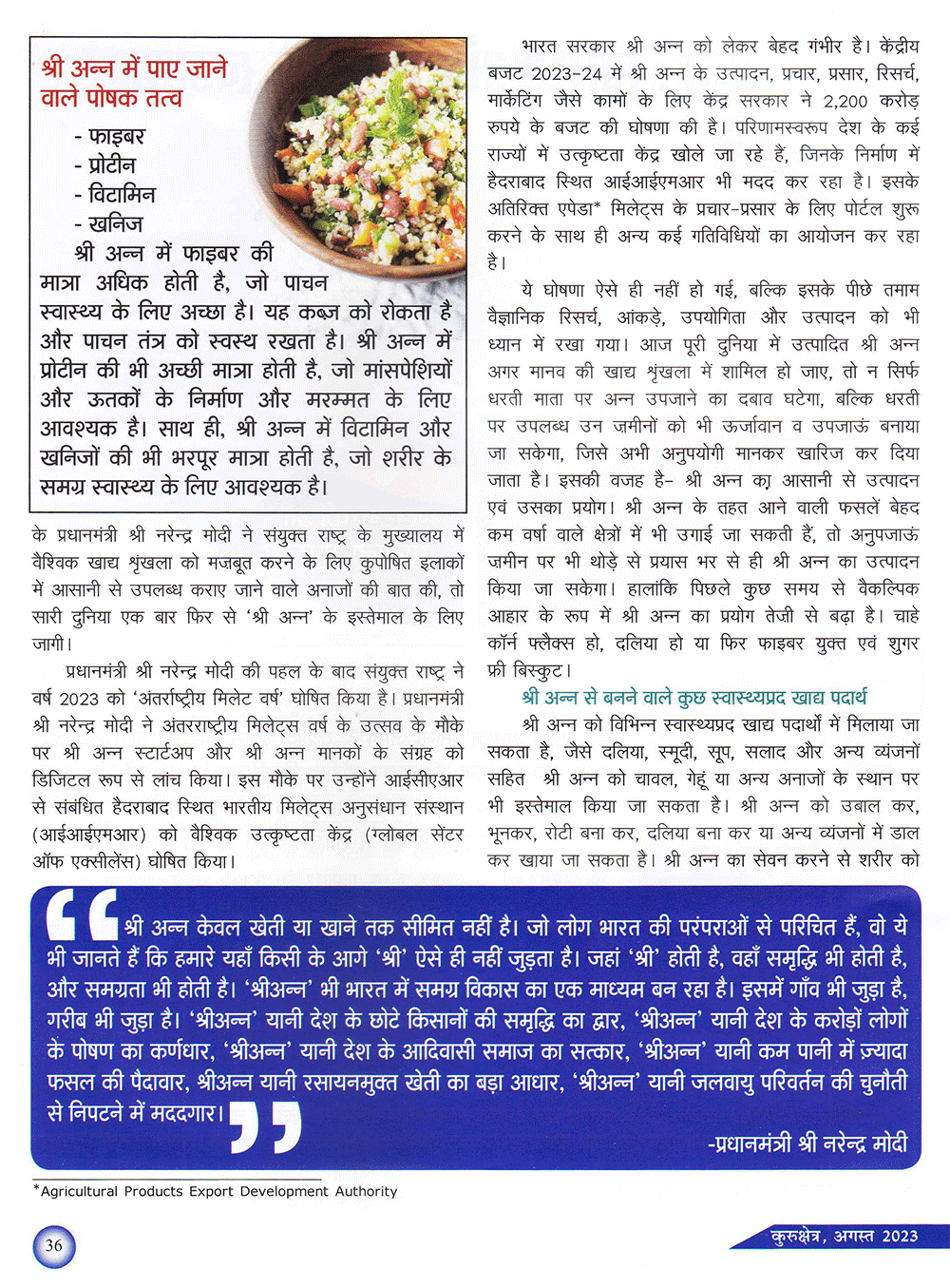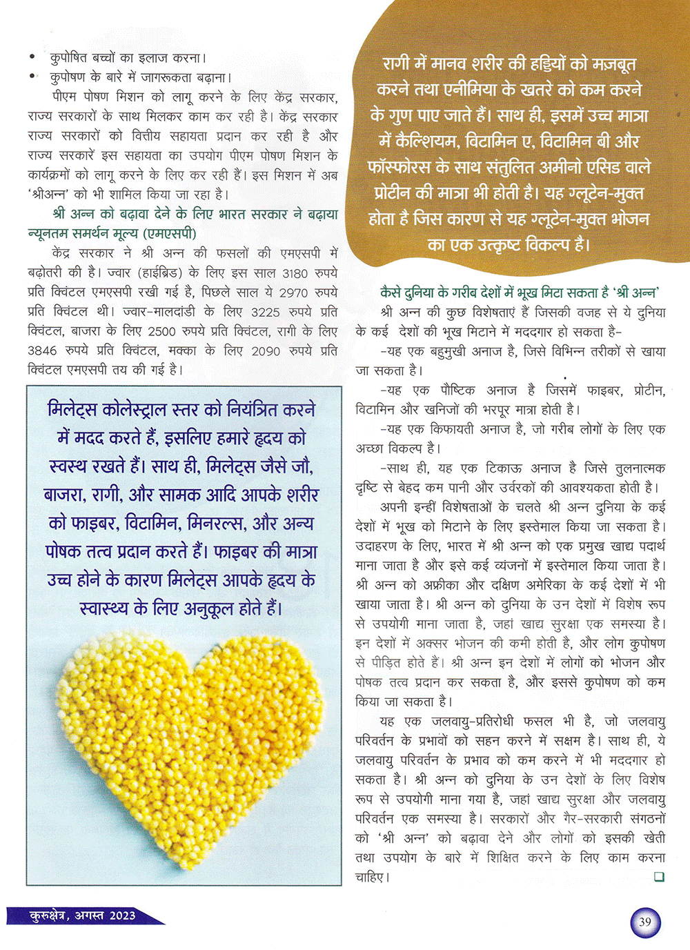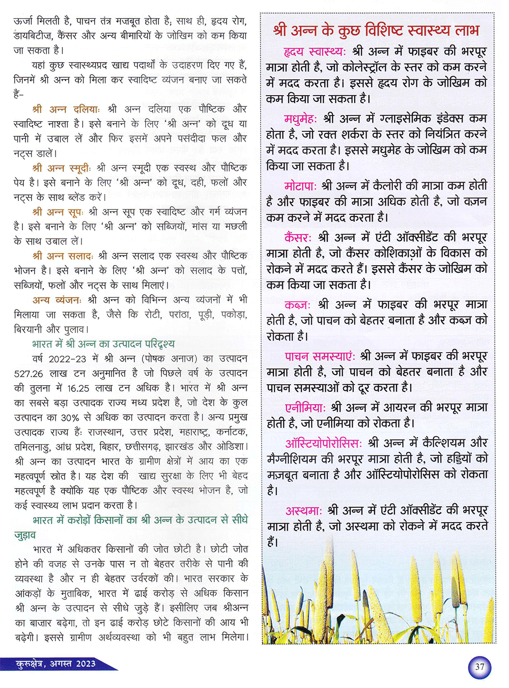 कुरुक्षेत्र : श्री अन्न : स्वास्थ्य और सेहत का खजाना