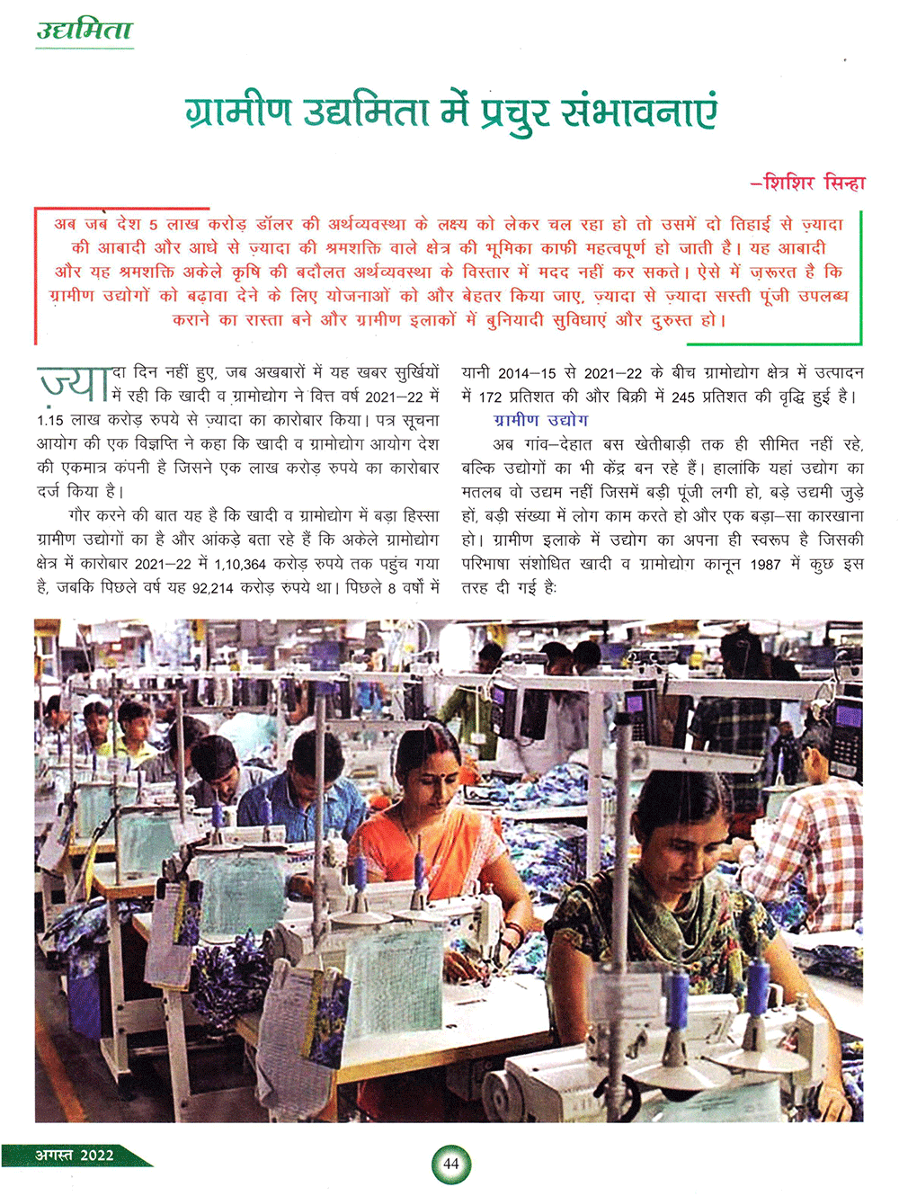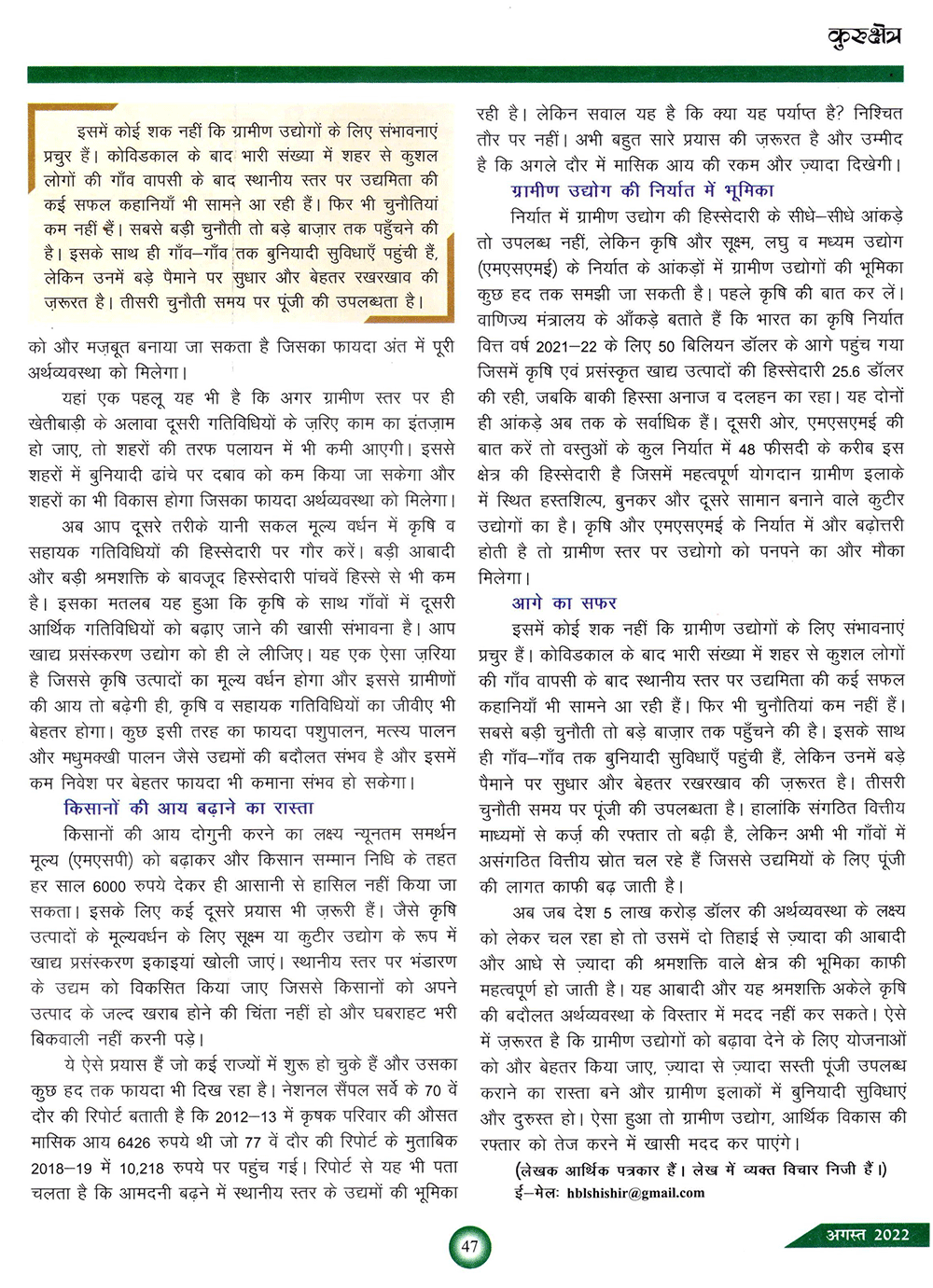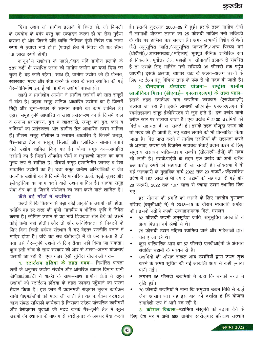 कुरुक्षेत्र : ग्रामीण उद्यमिता को बढ़ावा (03-07-2021)