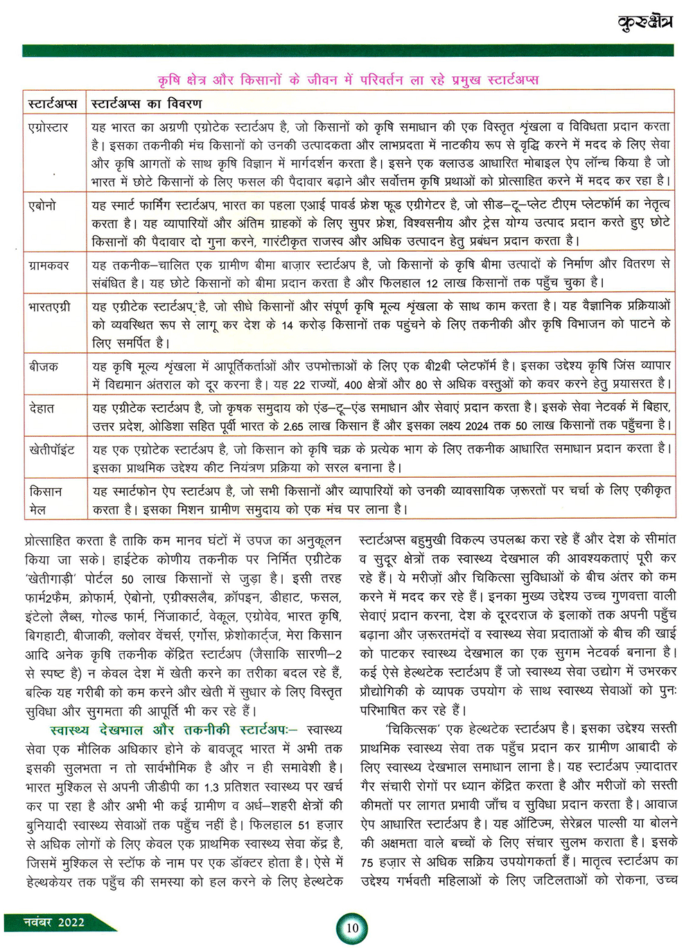कुरुक्षेत्र : कृषि स्टार्टअप्स एवं उद्यमिता विकास (04-09-2021)