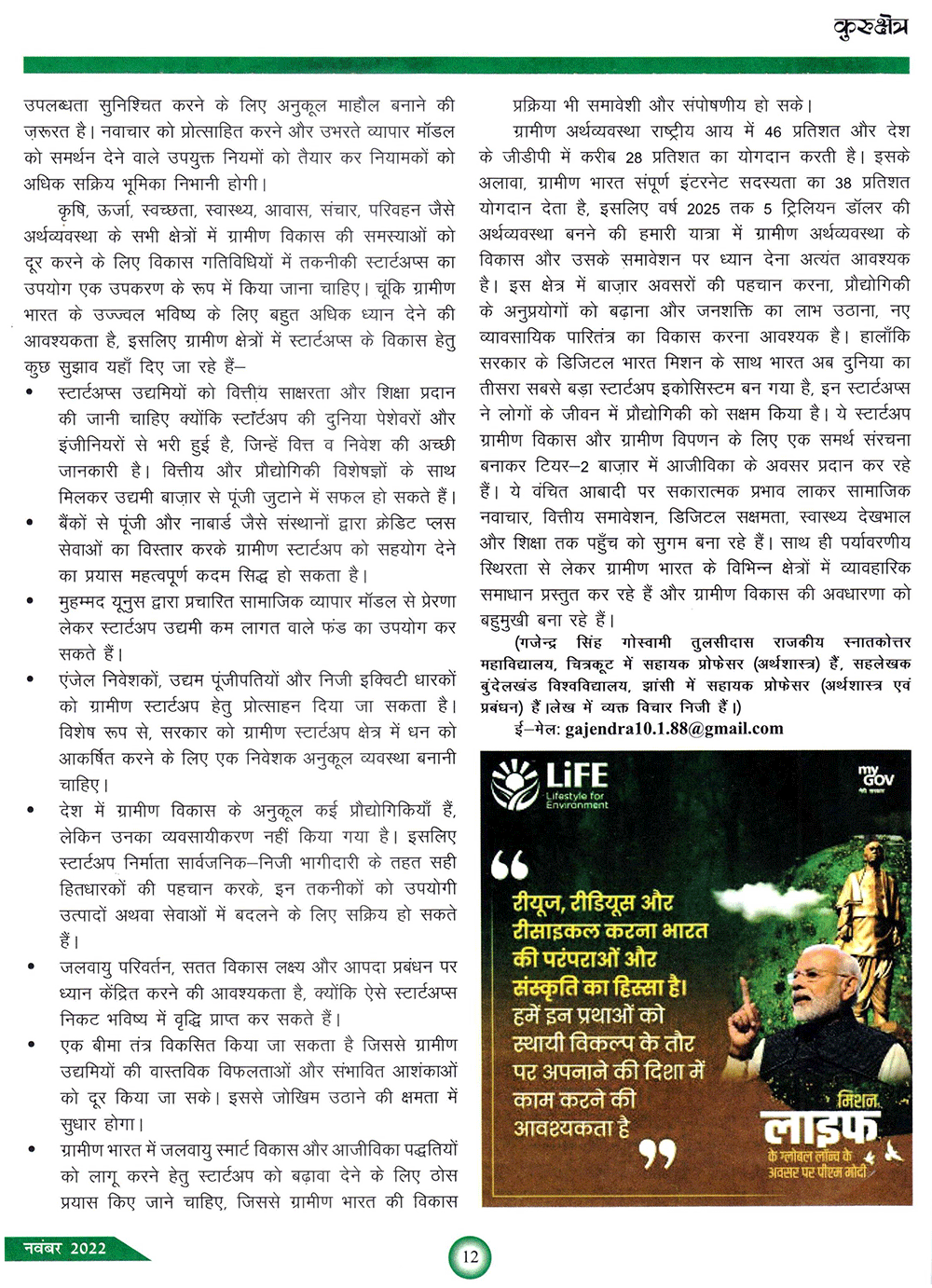 कुरुक्षेत्र : ग्रामीण भारत को पुनर्परिभाषित करते स्टार्टअप्स
