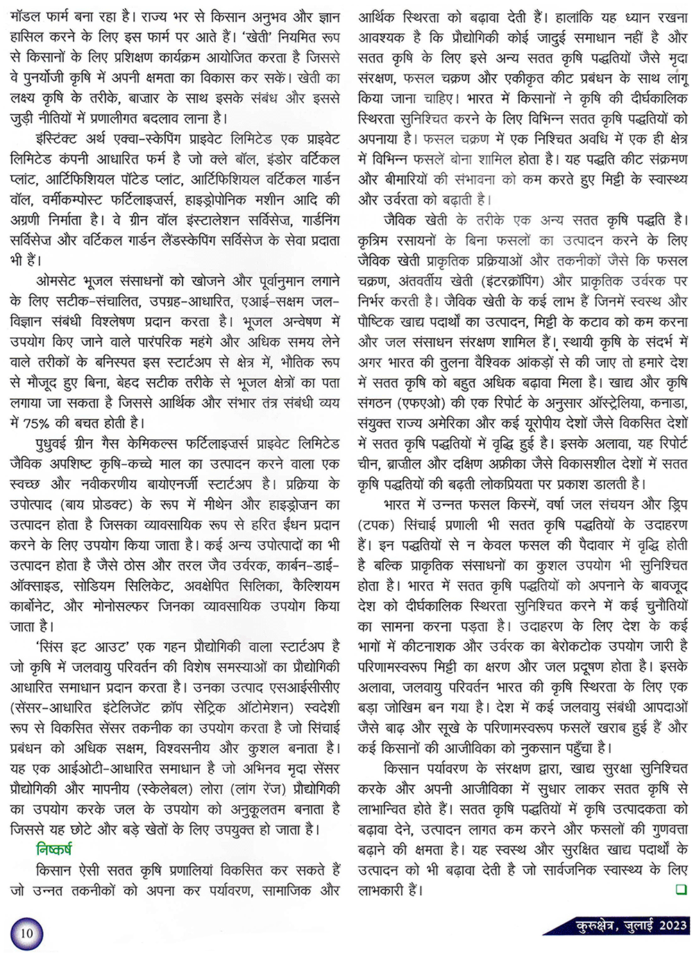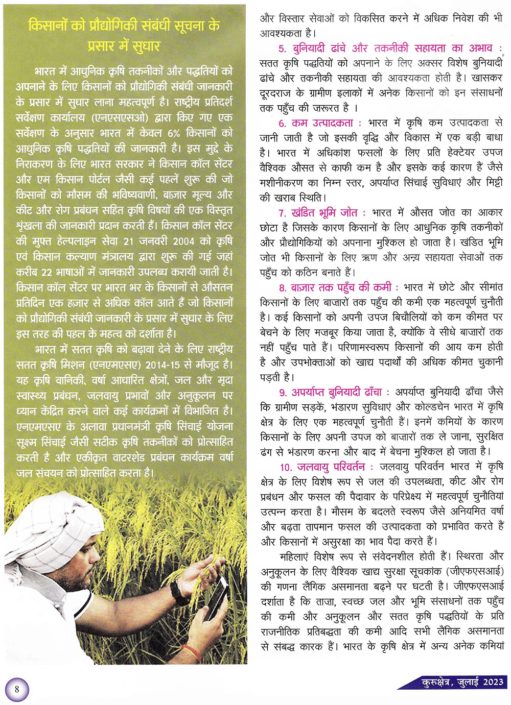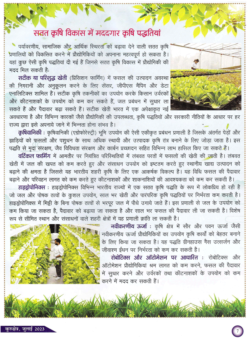 कुरुक्षेत्र : सतत कृषि विकास के लिए प्रौद्योगिकी
