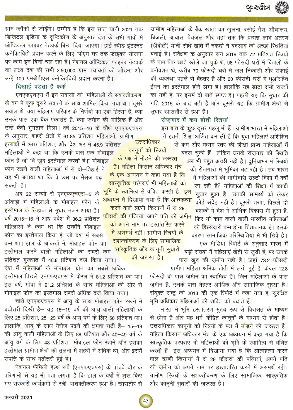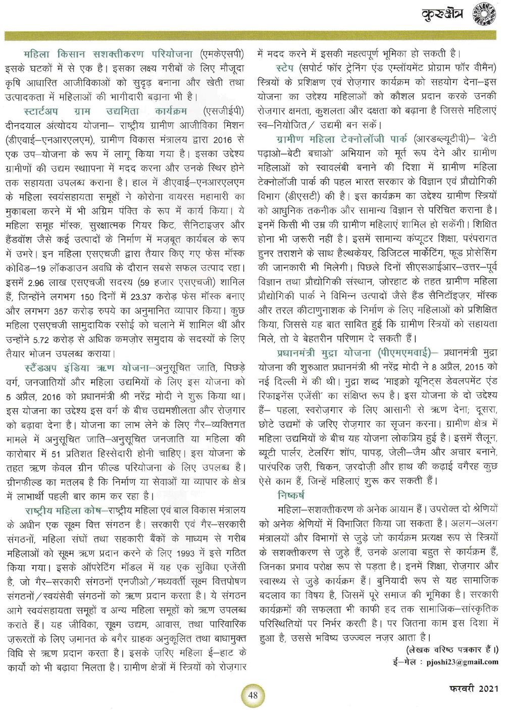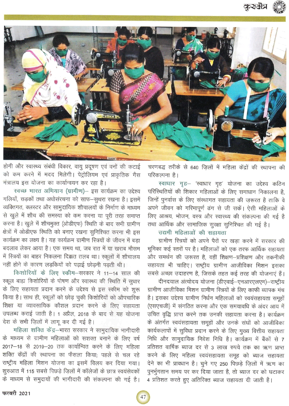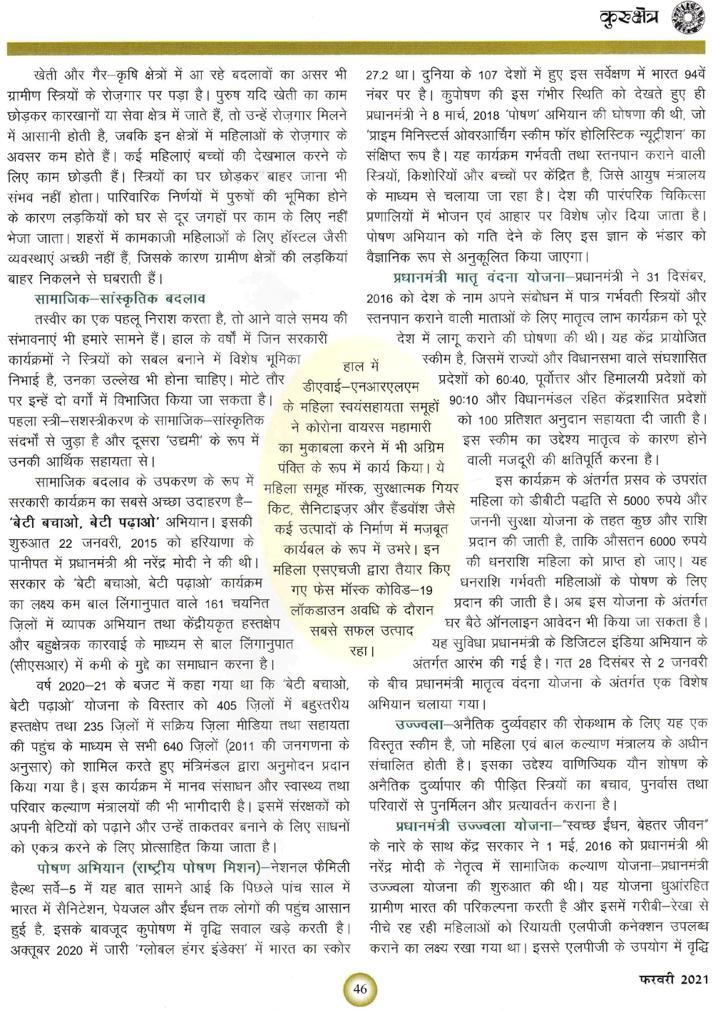 कुरुक्षेत्र : आत्मनिर्भर भारत के लिए महिला सशक्तीकरण (06-03-2021)
