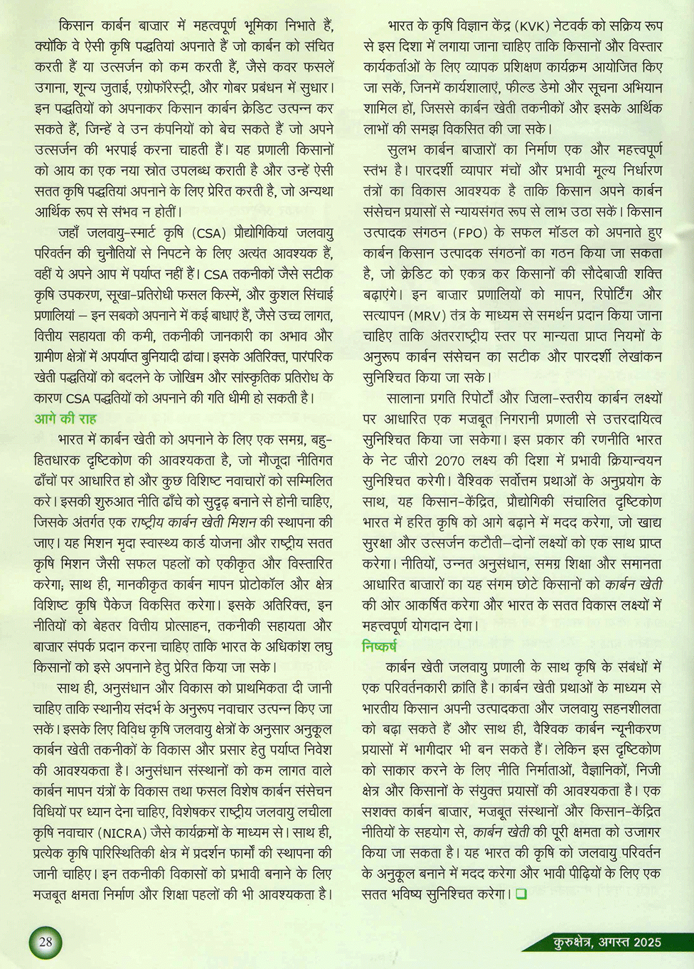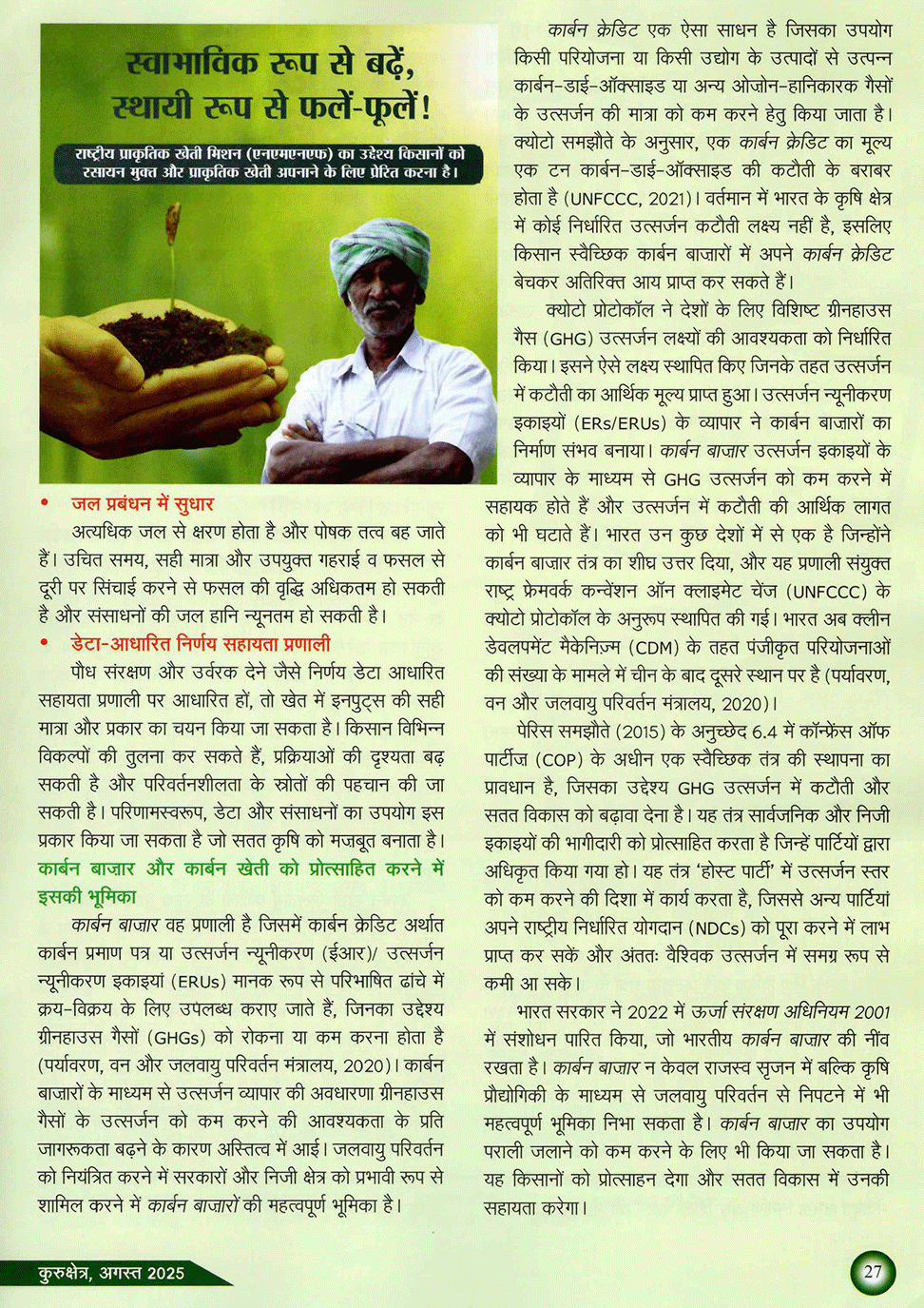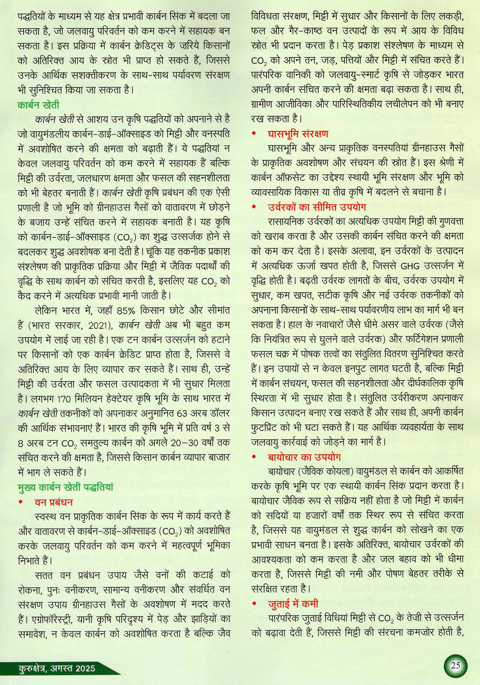 कुरुक्षेत्र – कार्बन खेती जलवायु-स्मार्ट कृषि तकनीक