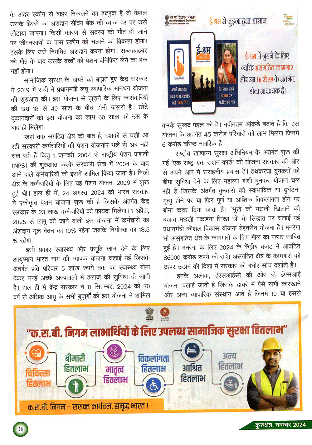 कुरुक्षेत्र : असंगठित श्रमिकों के लिए सामाजिक सुरक्षा : एक विश्लेषण