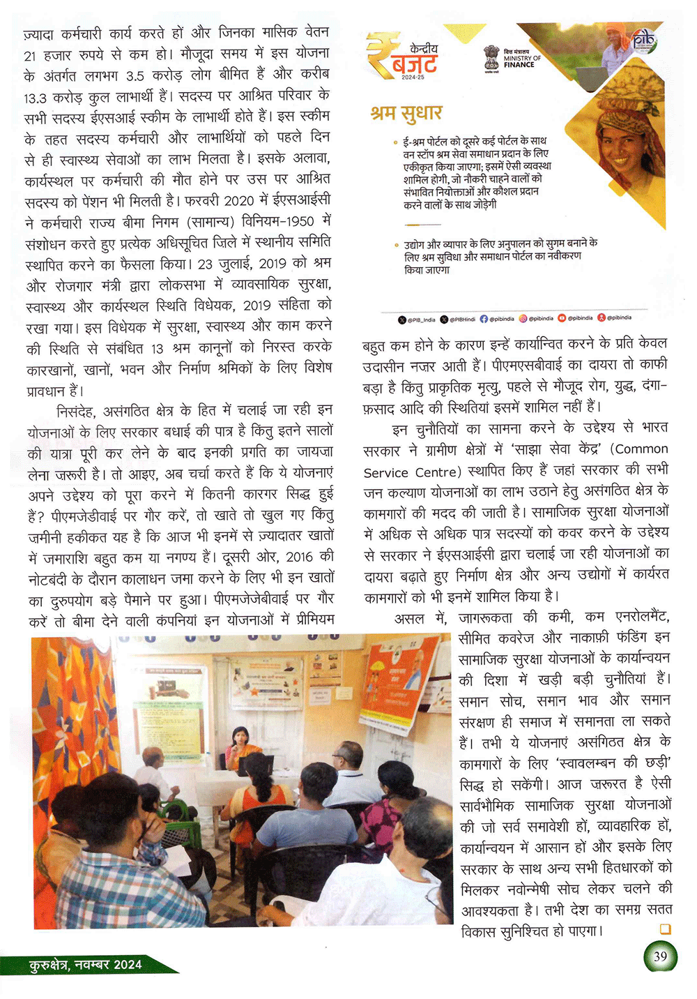 कुरुक्षेत्र : असंगठित क्षेत्र के कामगारों के लिए सामाजिक सुरक्षा