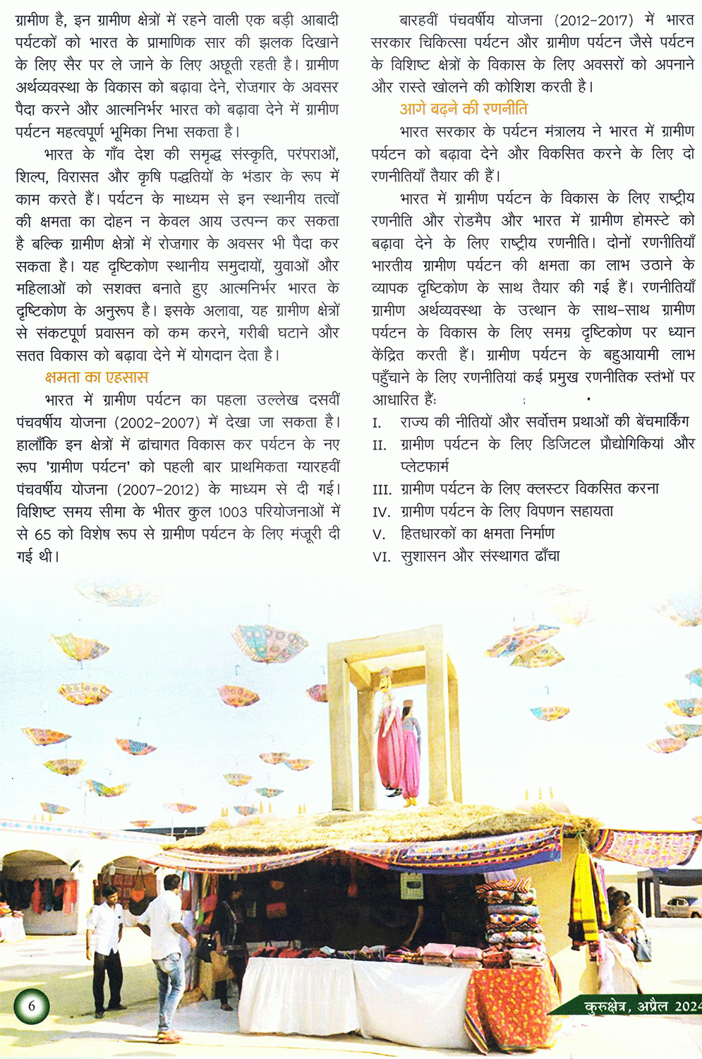 कुरुक्षेत्र : ग्रामीण भारत में बहुआयामी विकास का उत्प्रेरक ग्रामीण पर्यटन