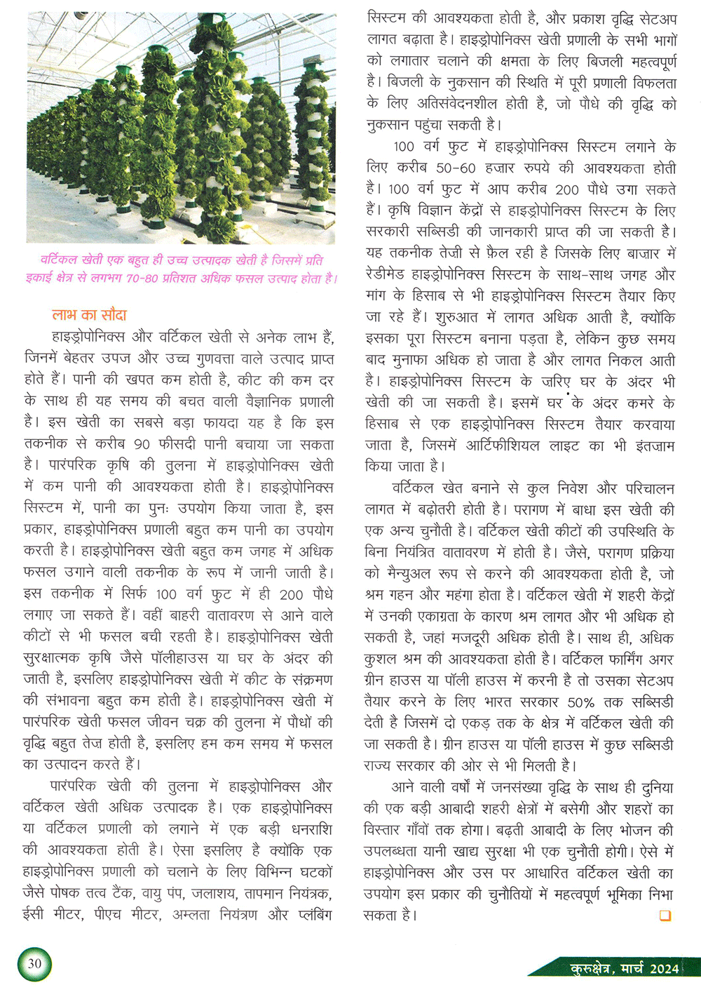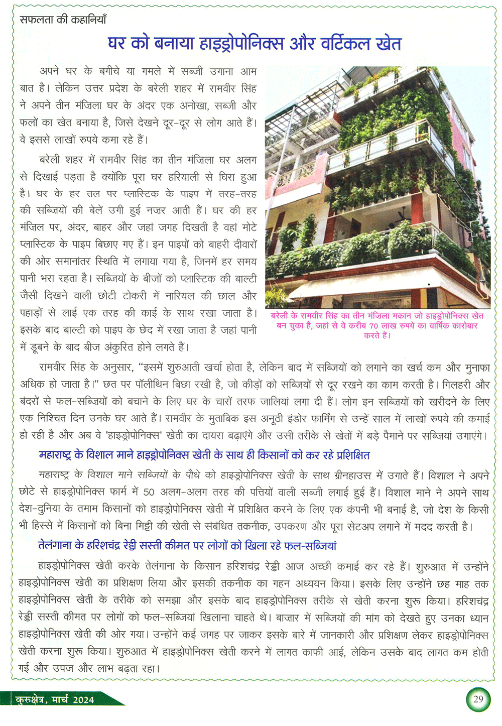कुरुक्षेत्र : भविष्य की खाद्य सुरक्षा के लिए हाइड्रोपोनिक्स और वर्टिकल खेती