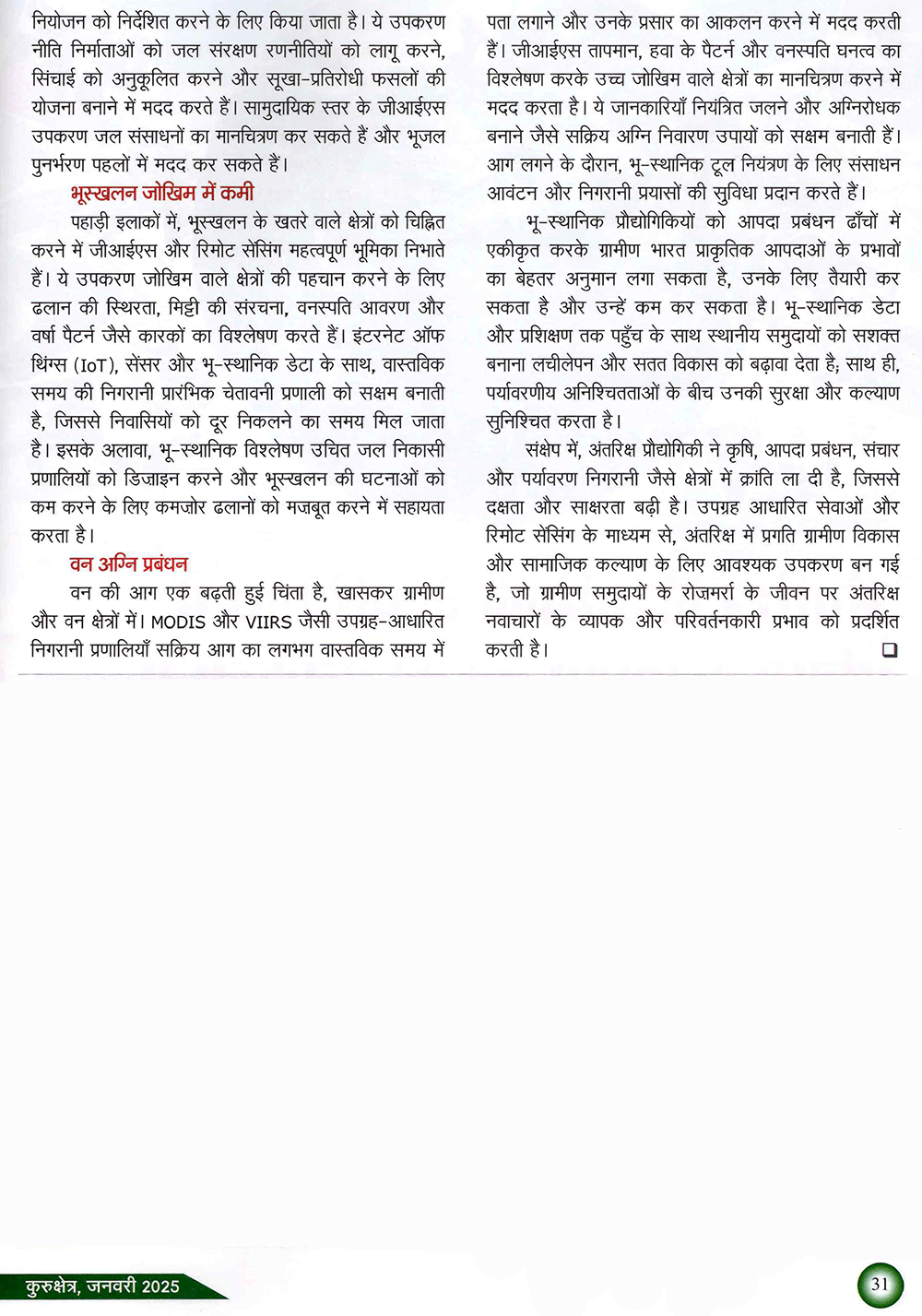 कुरुक्षेत्र : ग्रामीण विकास में अंतरिक्ष प्रौद्योगिकी की भूमिका